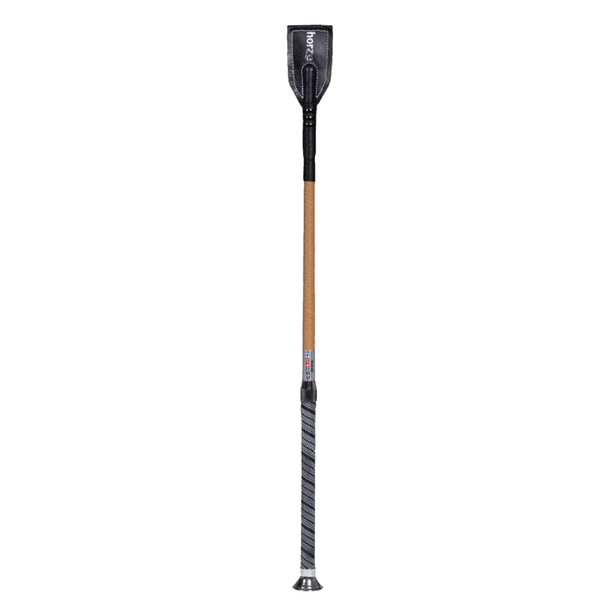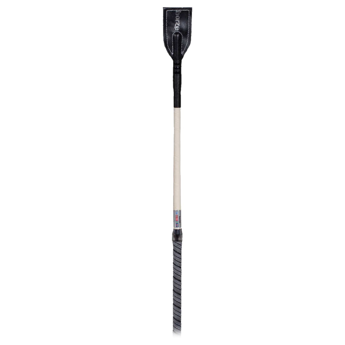 Скаковой хлыст с нескользящей прорезиненной ручкой и хлопушкой из синтетического материала.