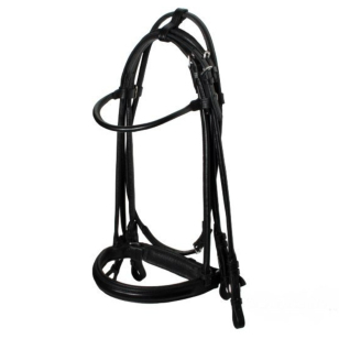 Оголовье мундштучное дутое из высококачественной натуральной кожи (Leather Bridle) с самозатягивающимся капсюлем. Мягкая подложка на капсюле делает уздечку комфортной даже для чувствительных лошадей. В комплекте 2 кожаных повода.