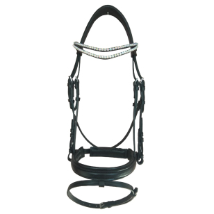 Оголовье из высококачественной натуральной кожи (Leather Bridle) с самозатягивающимся капсюлем. Мягкая подложка на капсюле и затылочном ремне делает уздечку комфортной даже для чувствительных лошадей. Налобный ремень украшен стразами (украшение может отличаться от фотографии. Уточняйте у менеджера). Затылочный ремень анатомической формы.