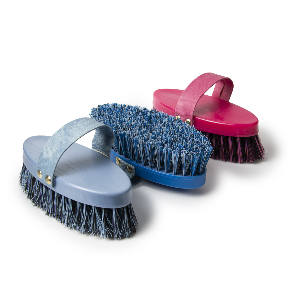 Щетка (brush) с искусственной щетиной средней жесткости на пластиковой основе с фактурой под дерево с ремешком для руки. Подходит для очистки тела после удаления основной грязи. Щетки средней жесткости отлично подходят для ежедневного применения. Чистка лошади играет большую роль в поддержании кожи и шерсти в здоровом состоянии.