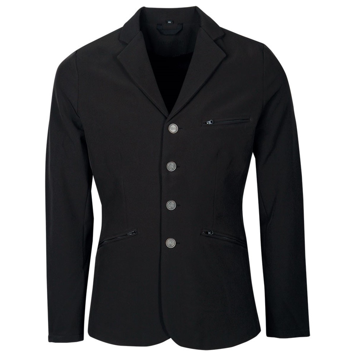 Редингот для верховой езды из софтшелла. 3 кармана на молнии, сетчатая подкладка, пуговицы в виде короны и два коротких разреза на спине.