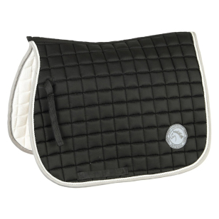 Вальтрап (Saddle Pad) анатомической формы с мягким наполнителем. Наполнитель из поролона и синтепона делает вальтрап объемным, что очень важно для амортизации. Подклад из вафельной ткани идеально впитывает влагу. Красивая фигурная отстрочка в небольшую клетку, По краю вальтрап украшен витым шнуром и логотипом. Хорошо держит форму и легок в уходе. Крепится на липучки.