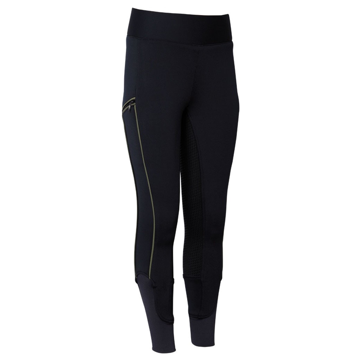 Леггинсы с высокой талией и полной силиконовой леей (Breeches with Silicone Knee Patch). Силиконовая лея предполагает отстутствие лишних швов в зоне колен и обеспечивает наибольшую фиксацию в седле. Материал плотный, комфортный для тела, "дышащий", эластичный. На бриджах два набедренных кармана на молнии. По всей длине штанины есть контрастный кант. Сзади на поясе аппликация "DIVA". В области щиколотки эластичная вставка.