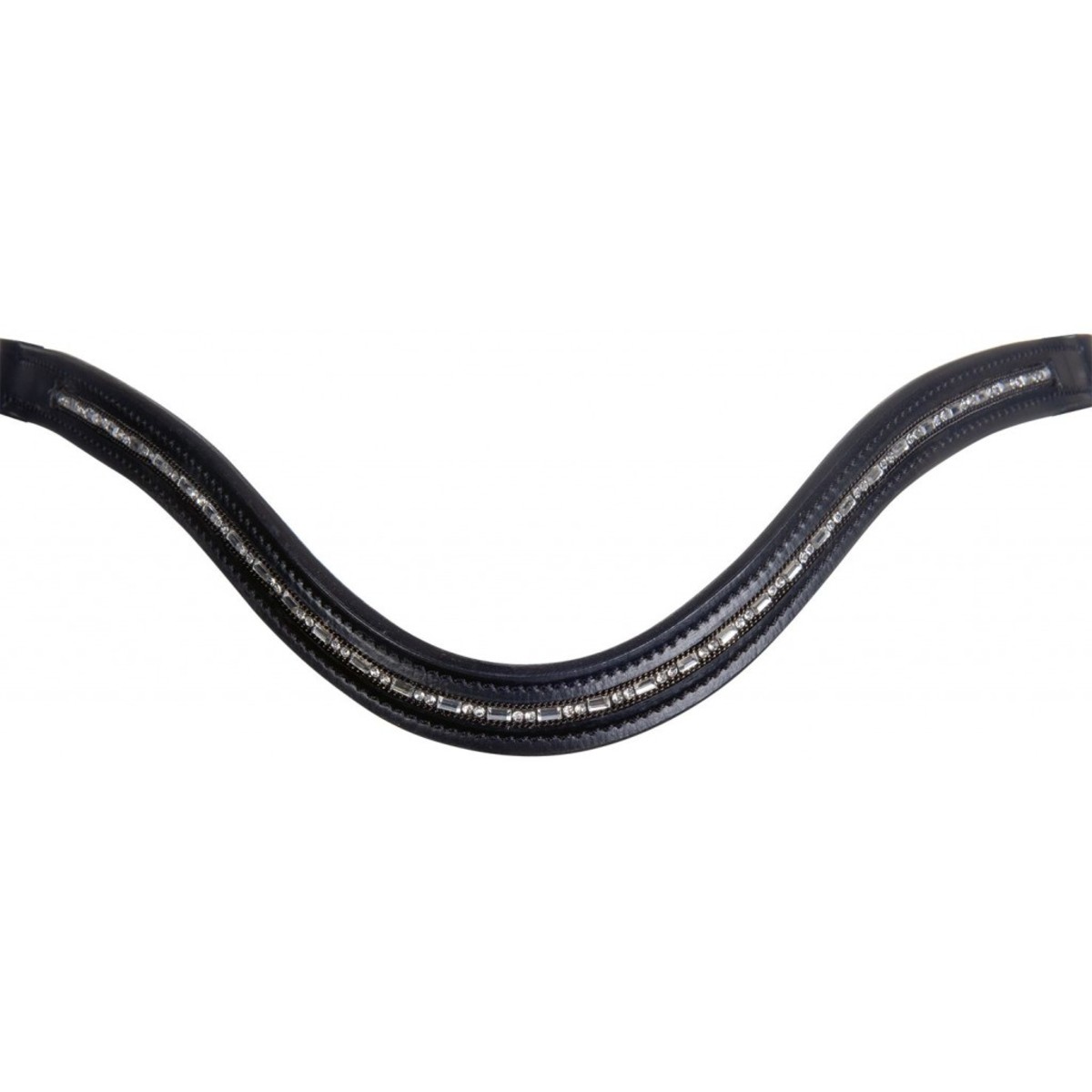 Оголовье трензельное из натуральной кожи (Leather Bridle) с самозатягивающимся капсюлем. Мягкие подложки на капсюле и затылочном ремнях делает уздечку комфортной даже для чувствительных лошадей. Налобный ремень украшен камнями. В комплекте с уздечкой идет тесьмяный повод с ограничителями и нашивками против скольжения.