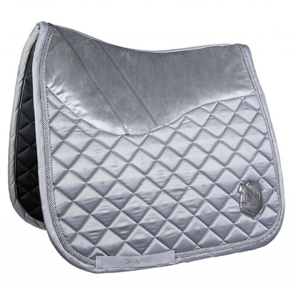 Универсальный вальтрап (All-Purpose Saddle Pad) анатомической формы. Дышащая сетчатая подкладка гарантирует превосходное поглощение влаги. Наполнитель из поролона и синтепона делает вальтрап объемным, что очень важно для амортизации. Вальтрап из красивой гладкой ткани с легким блестящим эффектом, украшен декоративным шнуром и логотипом. Сверху вставка из вельвета.
