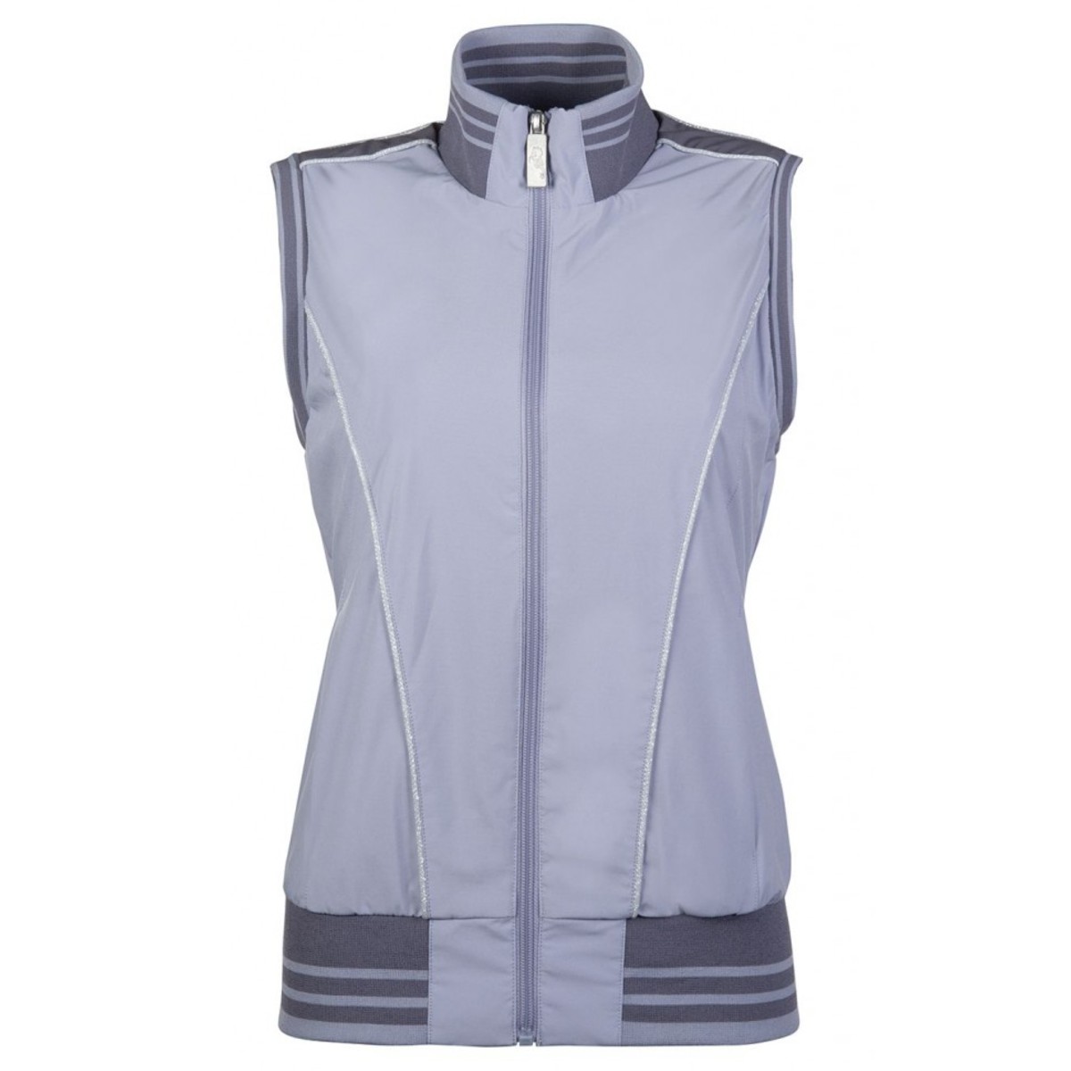 Легкий жилет для верховой езды (Riding Vest) из ветрозащитной ткани. Верхняя ткань легка в уходе благодаря грязеотталкивающей поверхности. 2 боковых кармана на молнии. Слева внутренний кармашек. Плотно прилегает к телу благодаря широкой эластичной резинке. Жилет украшен кантом из блестящей ткани.