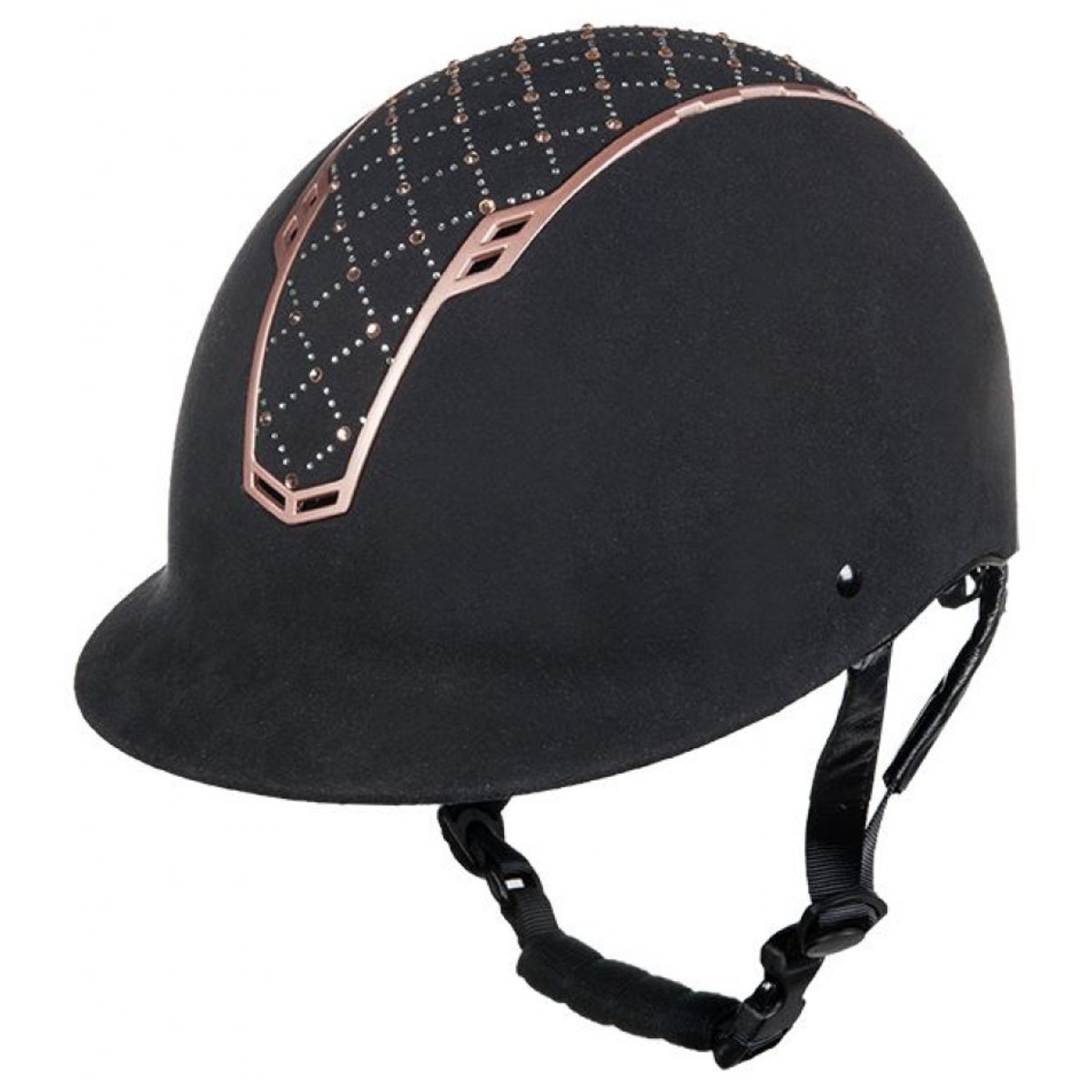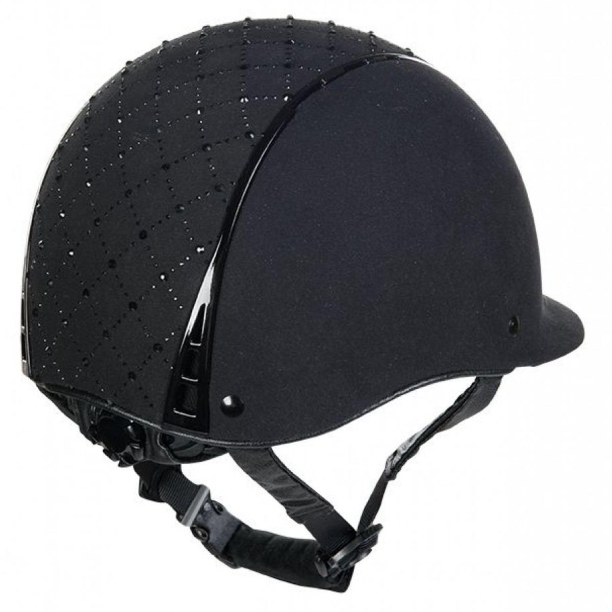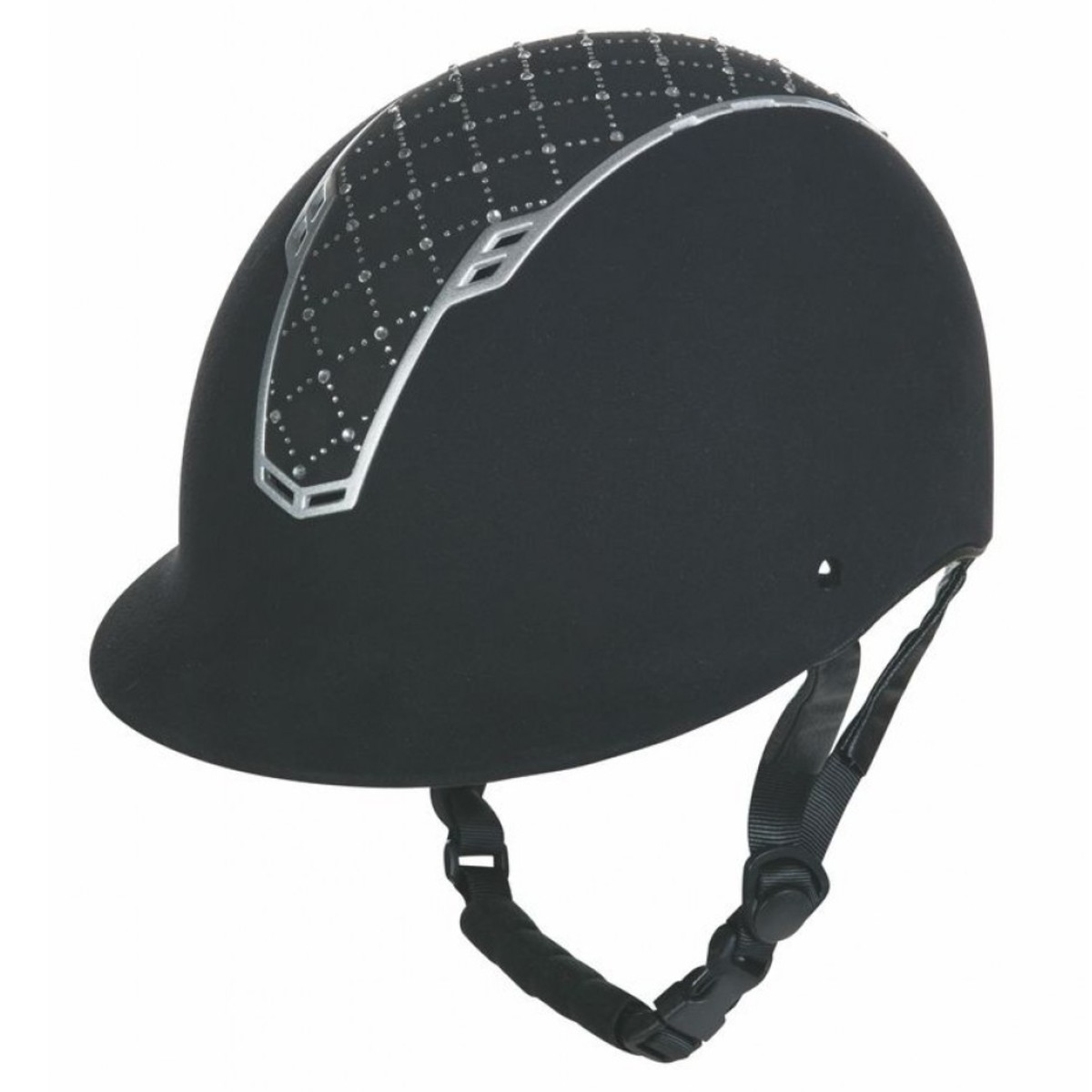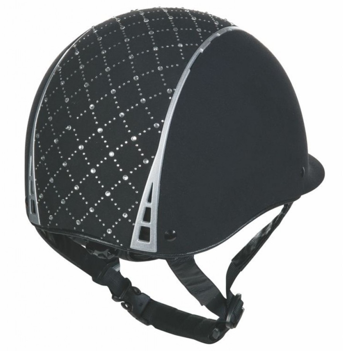 Легкий пластиковый регулируемый шлем (adjustable helmet for rider) будет незаменим для верховой езды. Шлем украшен блестящей вставкой со стразами.. На шлеме располагаются вентиляционные отверстия. Регулировка размера позволяет приобрести шлем "на вырост", что очень важно при покупке шлема для ребенка. Благодаря системе регулирования возможно корректировать размер шлема в зависимости от сезона: зимой достаточно немного ослабить шлем, чтобы носить его с подшлемником. Размер шлема регулируется элементами "Системы быстрой адаптации " (FAS - Fast Adapting System) на подбородной и в затылочной частях. Подложки из мягкого материала предотвращает натирание.