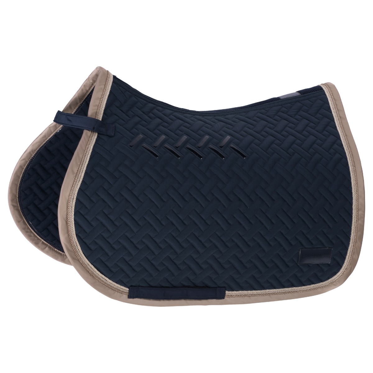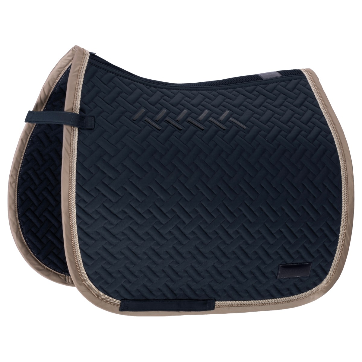 Вальтрап (Saddle Pad) с фигурной стежкой. Материал верха Insensitive Dura. Компактный наполниетль средней толщины. С двух сторон украшен эмблемами. По контуру очерчен красивым шнуром.