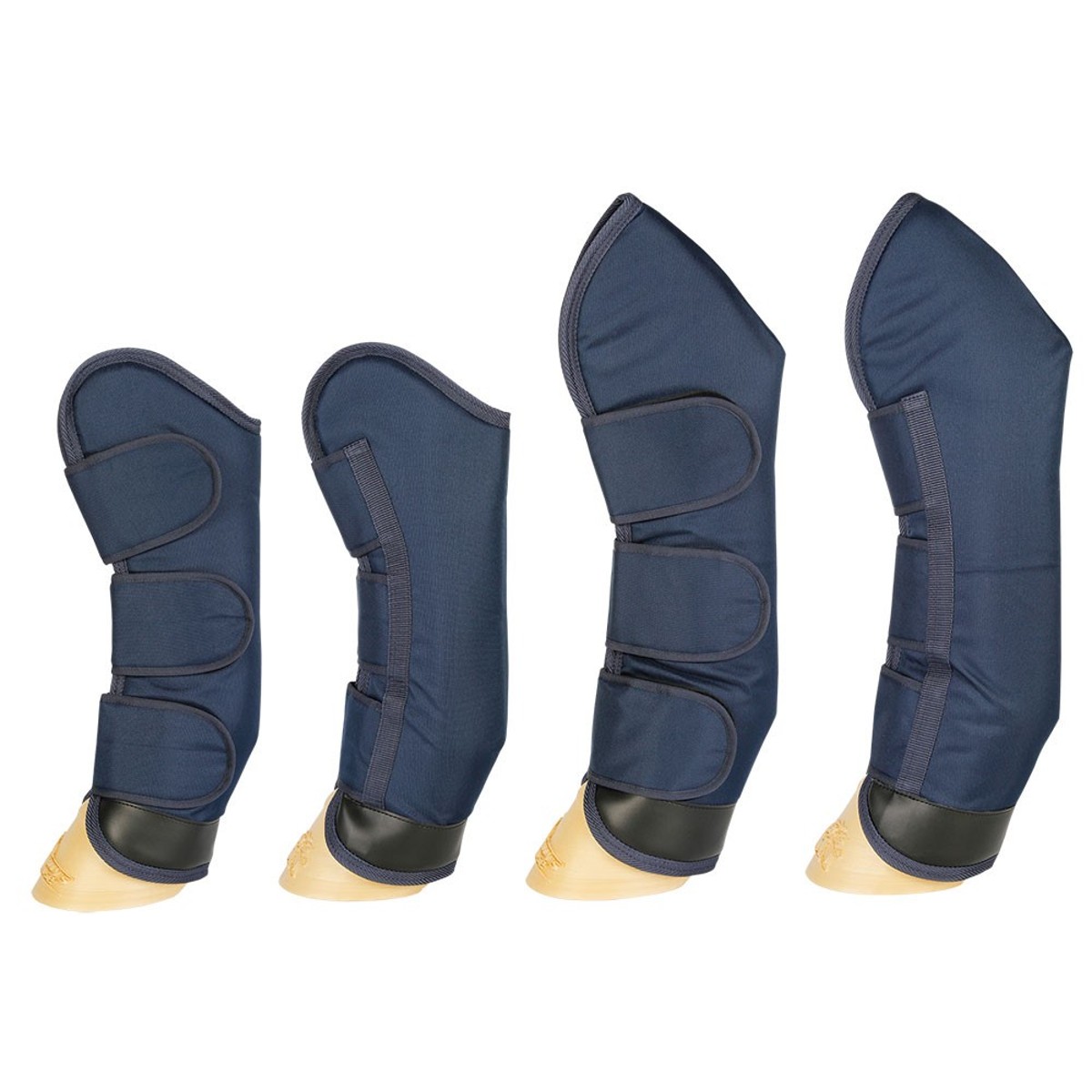 Транспортировочные ногавки (Travel boots) для защиты ног лошади. Внешнее покрытие из полиэстера 600D с мягкой сетчатой подкладкой. Анатомическая форма, застежки-велькро около 10 см в ширину. Набор из 4 штук.