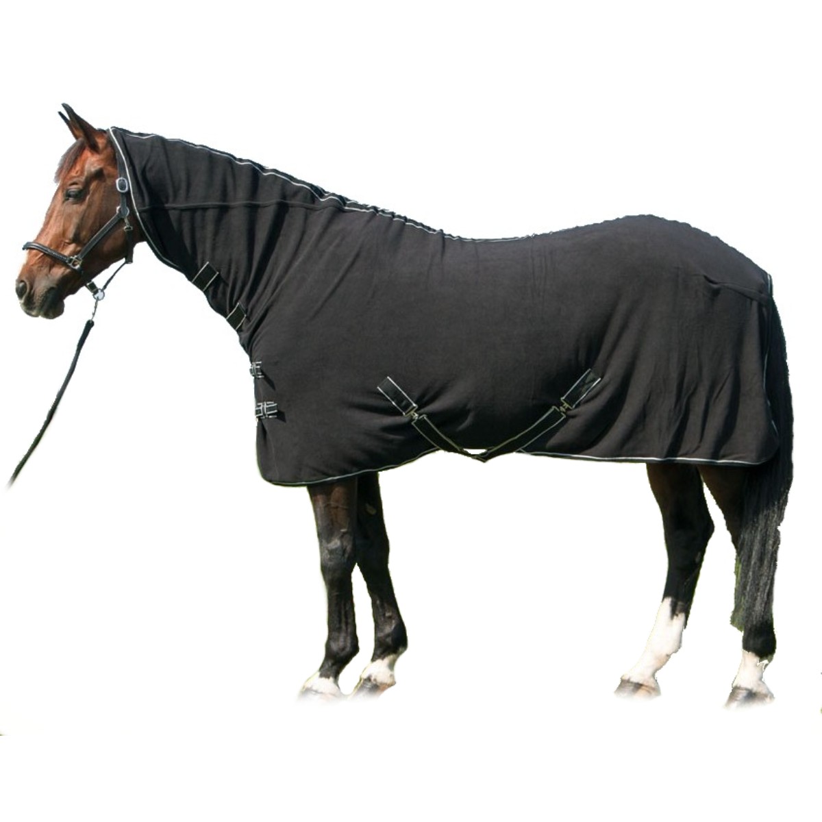 Флисовая попона с капором (Fleece Rug) согреет вашу лошадь в прохладное время года. Имеет хорошее водопоглощение, может использоваться для сушки в деннике. Верхняя часть попоны переходит в капор, который согревает шею и обеспечивает хорошую посадку на лошади. Спереди у попоны застежки на липучке и на пряжках. Подхвостный шнур в задней части попоны также предотвращает её сползание.