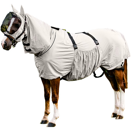 Попона от насекомых и солнечных лучей. Сделана из мягкого полиэстера со специальной защитой. Попона закрывает все тело лошади.