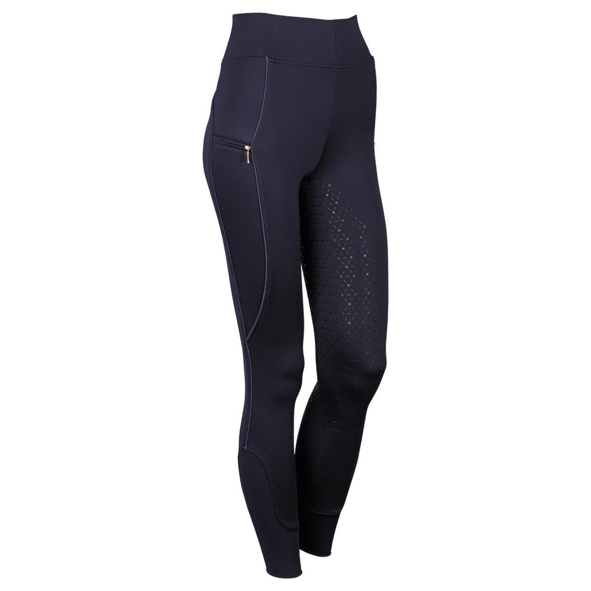 Леггинсы с коленной силиконовой леей (Breeches with Silicone Knee Patch). Силиконовая лея предполагает отстутствие лишних швов в зоне колен и обеспечивает наибольшую фиксацию в седле. Материал комфортный для тела, "дышащий", эластичный. Подклад из тонкого флиса. Удобный широкий пояс с логотипом. Контрастная окантовка по бокам. 2 кармана на потайной молнии. В области щиколотки эластичная вставка.