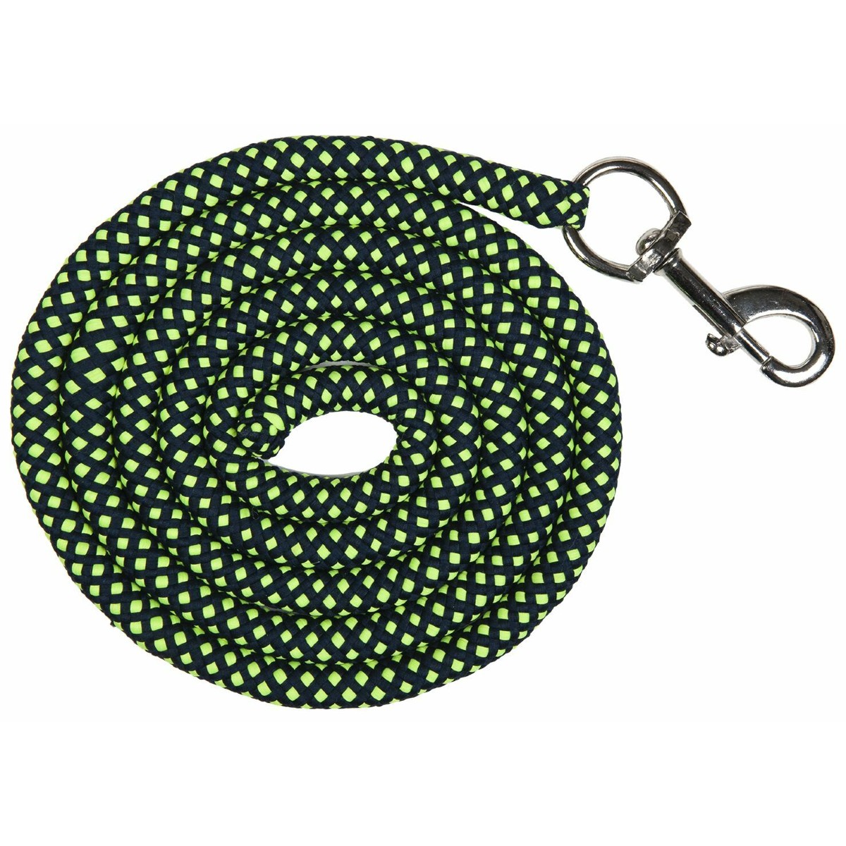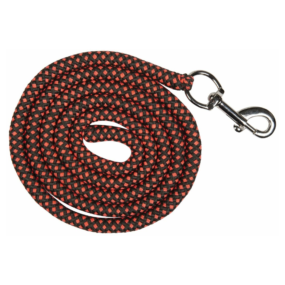Разноцветный нейлоновый чумбур. Выполнен из нескользящего прочного материала. Сочетание контрастных цветов украшает чумбур. Металлический карабин серебристого цвета.