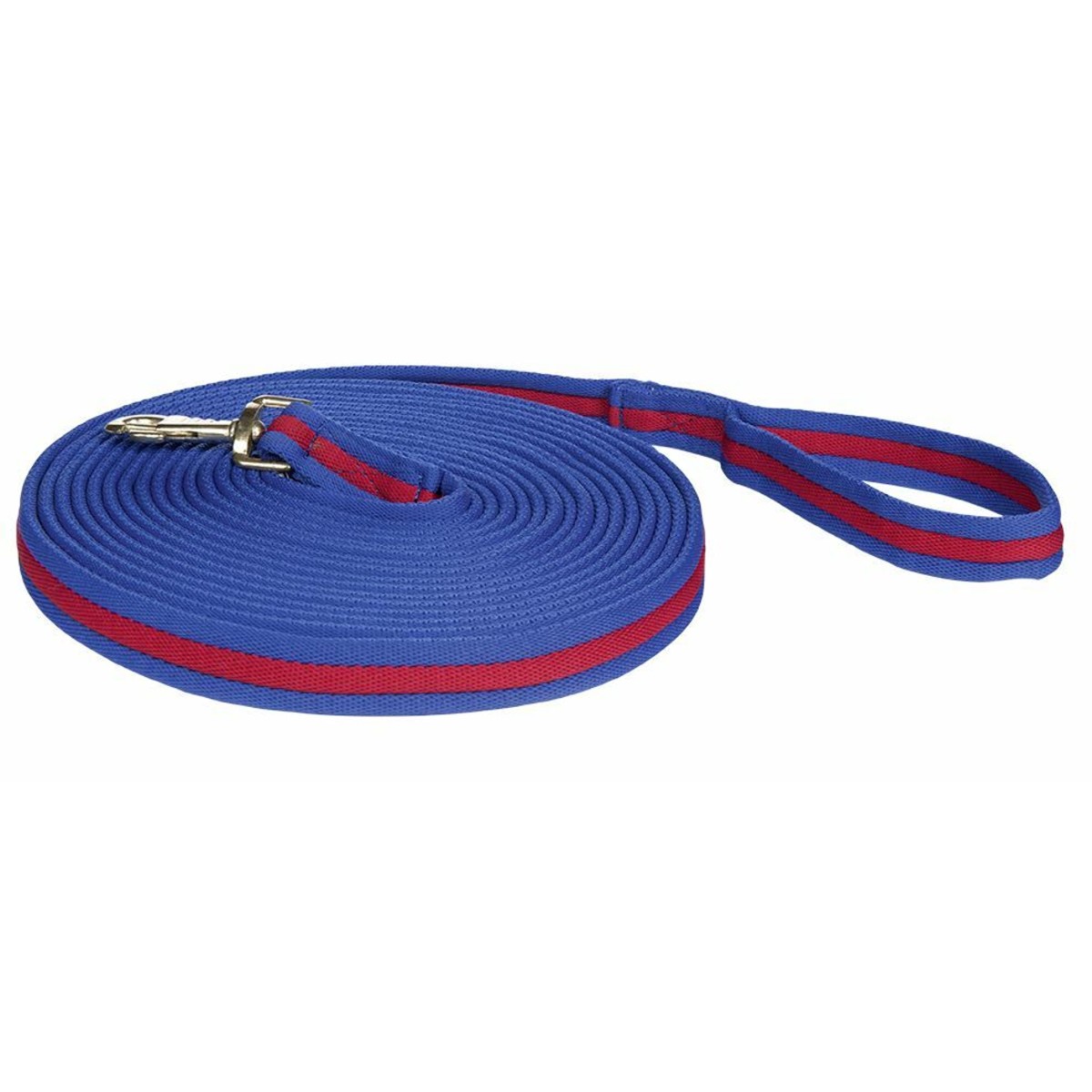 Высококачественная, прочная корда с ручкой-петелькой на конце (Lunge Line). Сделана из мягкого и нескользящего материала. Карабин с элементом вращения, латунного цвета