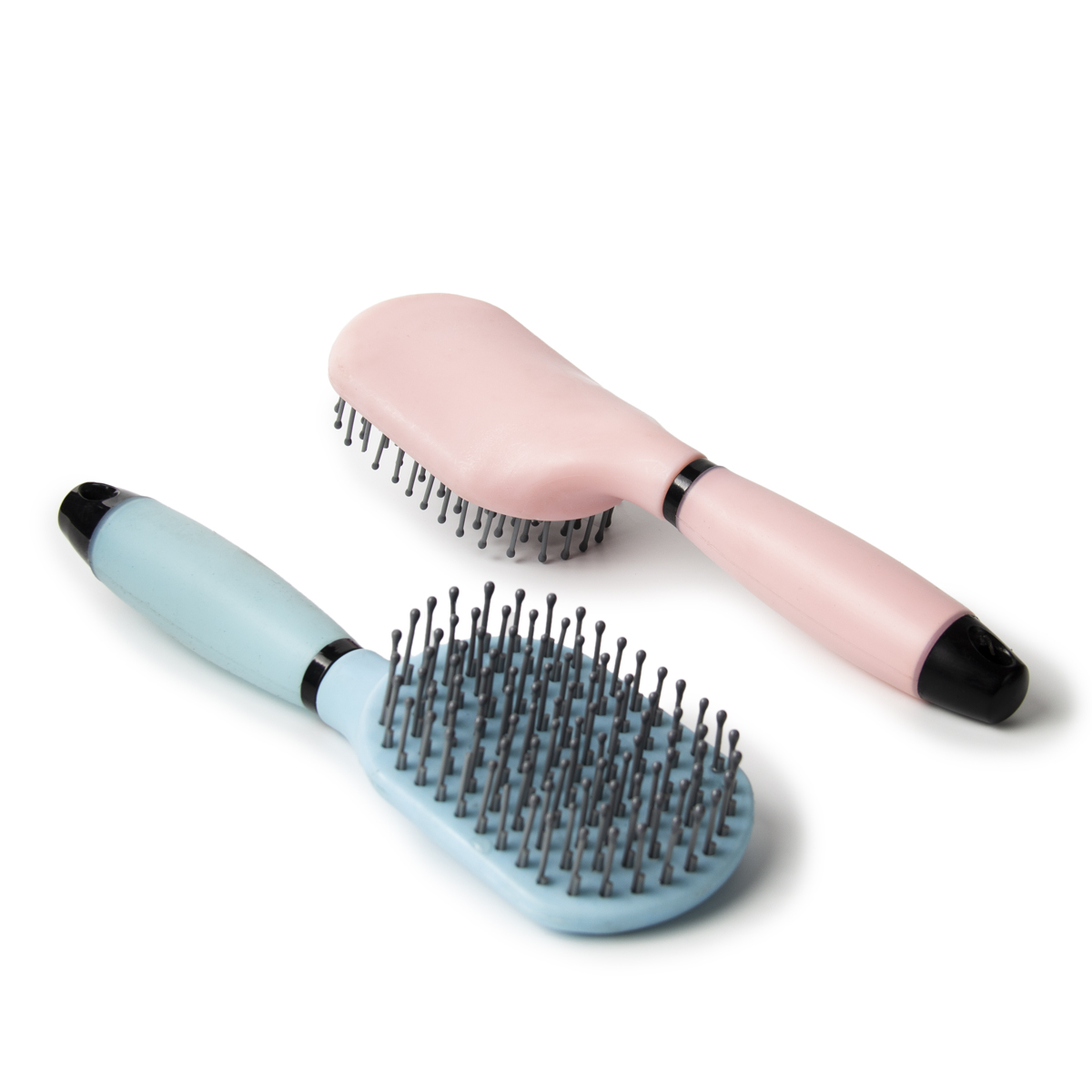 Яркая расческа с удобной гелевой ручкой для гривы и хвоста, поможет вам ухаживать за вашей любимой лошадкой. Защитные "шарики" на зубчиках нужны, чтобы не вырывать волосы при расчесывании. Длина - 24 см. Цвет: голубой и розовый