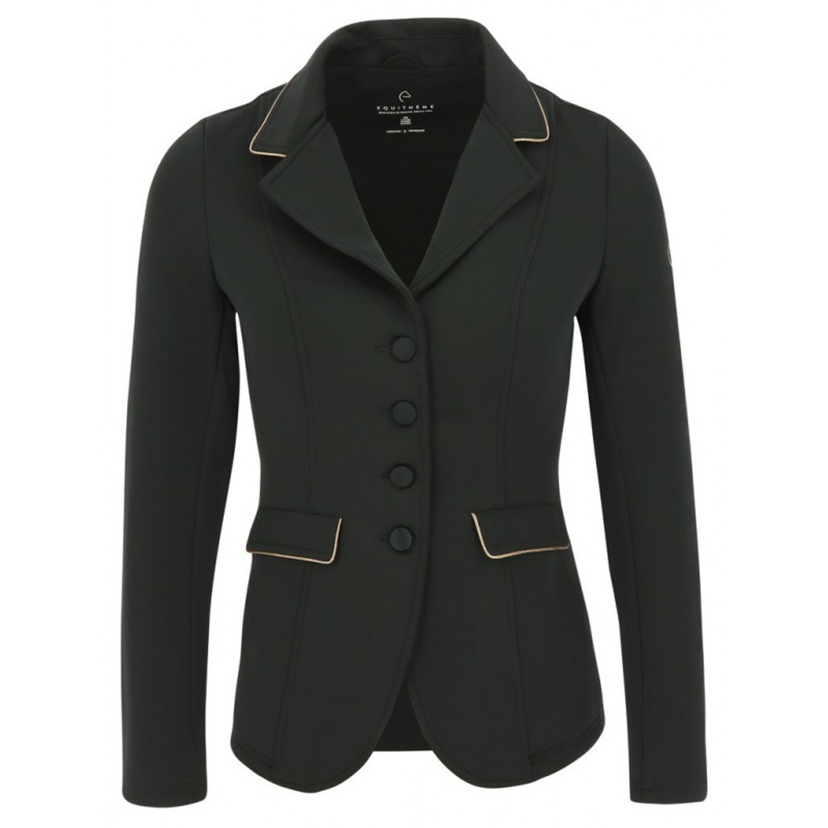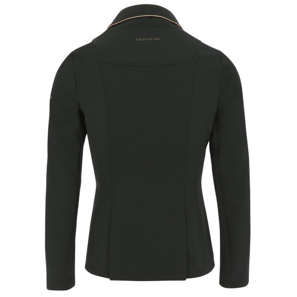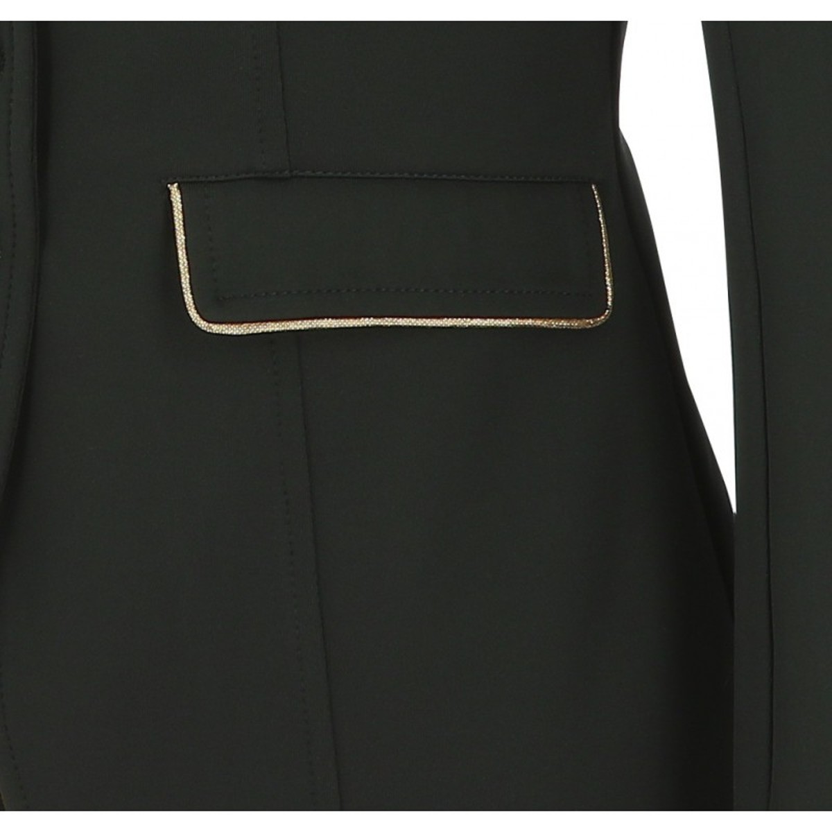 Легкий эластичный редингот для выступлений. Обеспечивает максимальный комфорт при езде. Застежки на пуговицах. Окантовка цвета розового золота на воротнике и клапанах передних карманов.