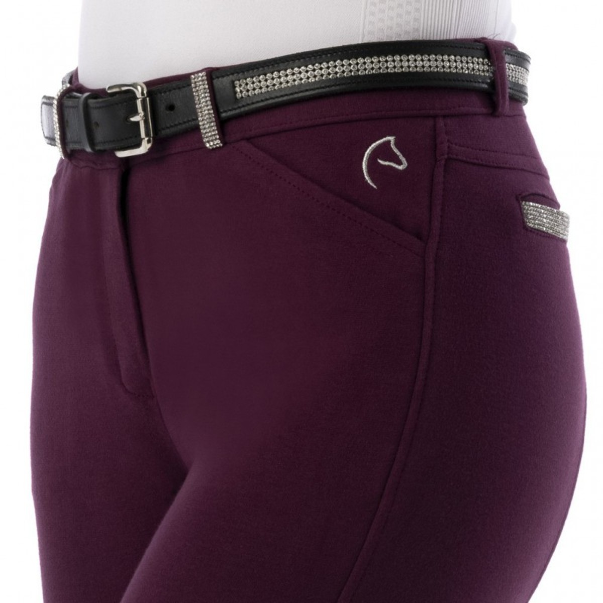 Удобные бриджи с полной силиконовой леей, которые шикарно выглядят благодаря поясу со шлевками и имитационным задним карманам со стразами. Из эластичного хлопка прямого кроя. Передние косые карманы. Машинная стирка при 30°C.