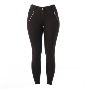 Бриджи с силиконовой коленной леей (Breeches with Silicone Knee Patch). Силиконовая лея предполагает отстутствие лишних швов в зоне колен и обеспечивает наибольшую фиксацию в седле. Материал комфортный для тела, "дышащий", эластичный. На бриджах есть 4 кармана: два передних кармана и два кармана сзади на замочках. Бриджи выглядят стильно благодаря контрастной эластичной вставке в области щиколотки.
