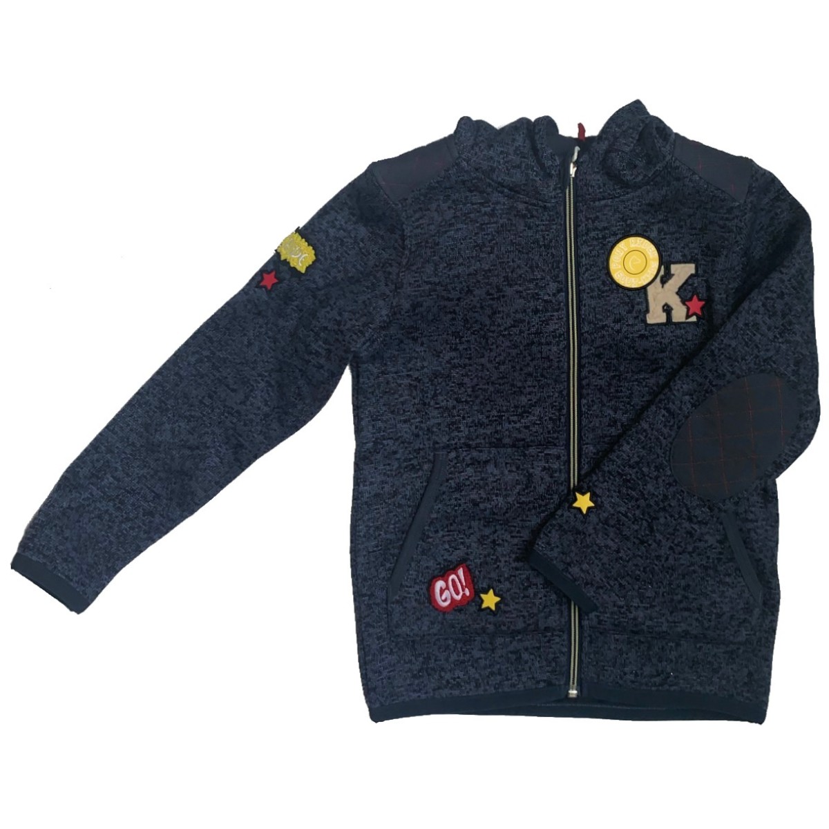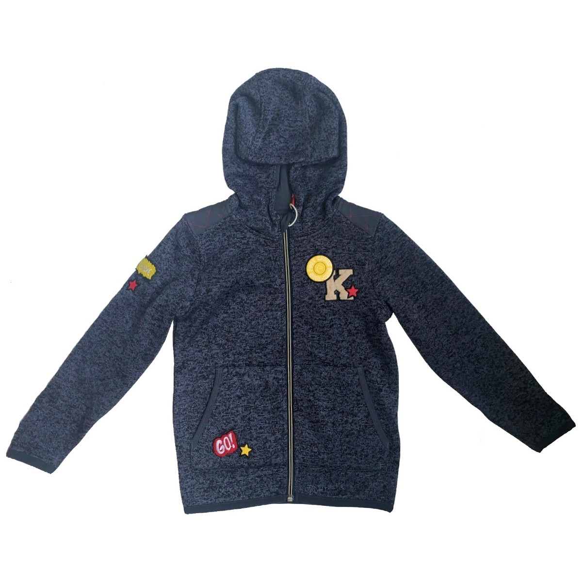 Утеплённая детская толстовка с флисовым подкладом (Jacket). Толстовка выглядит как изнанка свитера, но обладает всеми преимуществами флиса. Теплая, быстросохнущая толстовка с несъемным капюшоном, молнией во всю длину. Ее можно использовать дополнительно для большего тепла зимой, а также как куртку в более теплую погоду. Высокий воротник защищает шею в прохладную погоду. Застёгивается на молнию с двумя бегунками, есть защита подбородка. Два кармана по бокам. Толстовка смотрится стильно благодаря контрастным вставкам. Украшена небольшой вышивкой на груди и вышивкой с принтом на рукаве.