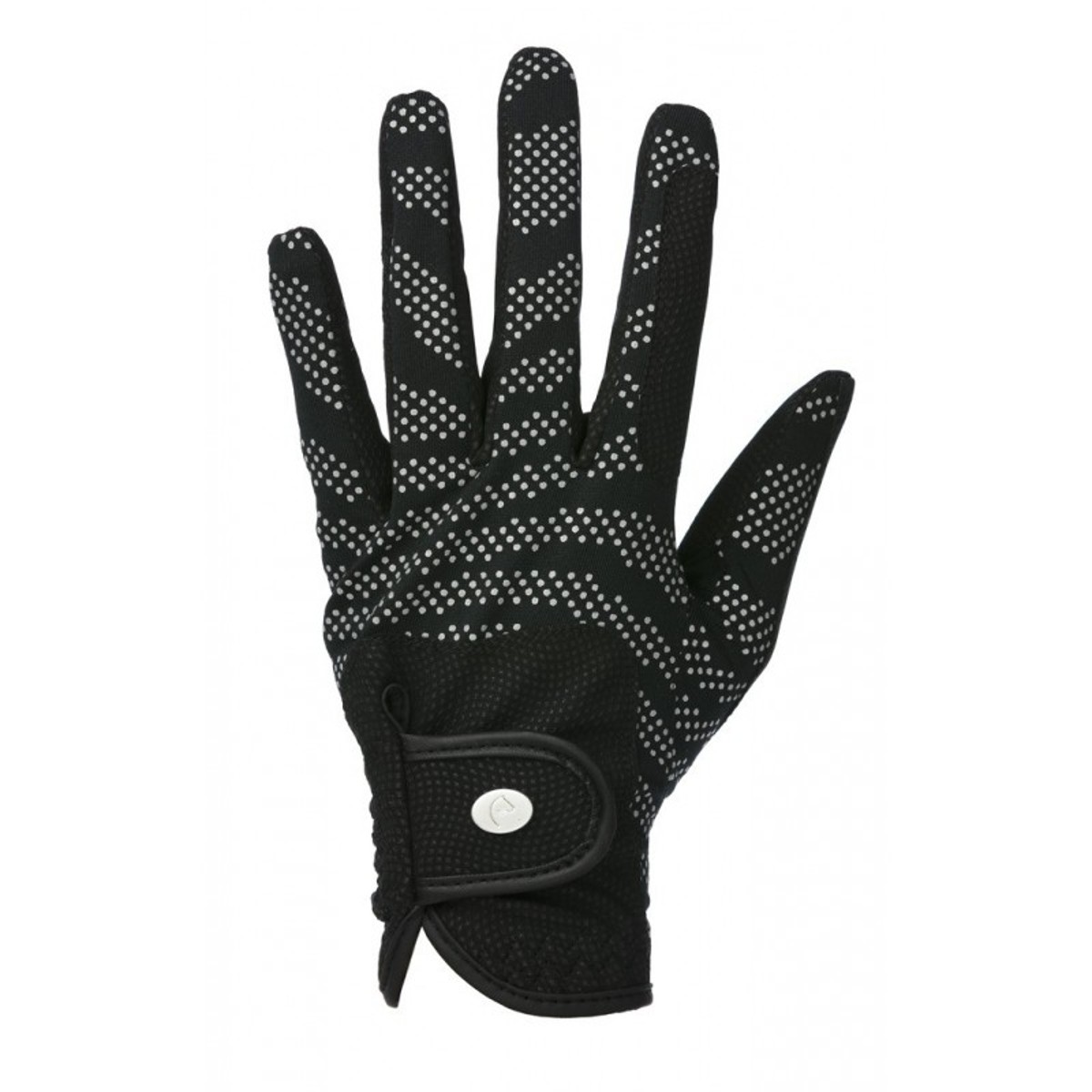 Мягкие перчатки для верховой езды (riding gloves). Ладони на перчатках выполнены из полиуретана, тыльная сторона выполнена из эластана с полиуретановыми вставками. Перчатки нескользящие, со светоотражающими узорами. Эластичные запястья с застежками на липучке и логотипом EQUITHÈME. Перчатки не стесняют движения. Удобные и износостойкие.