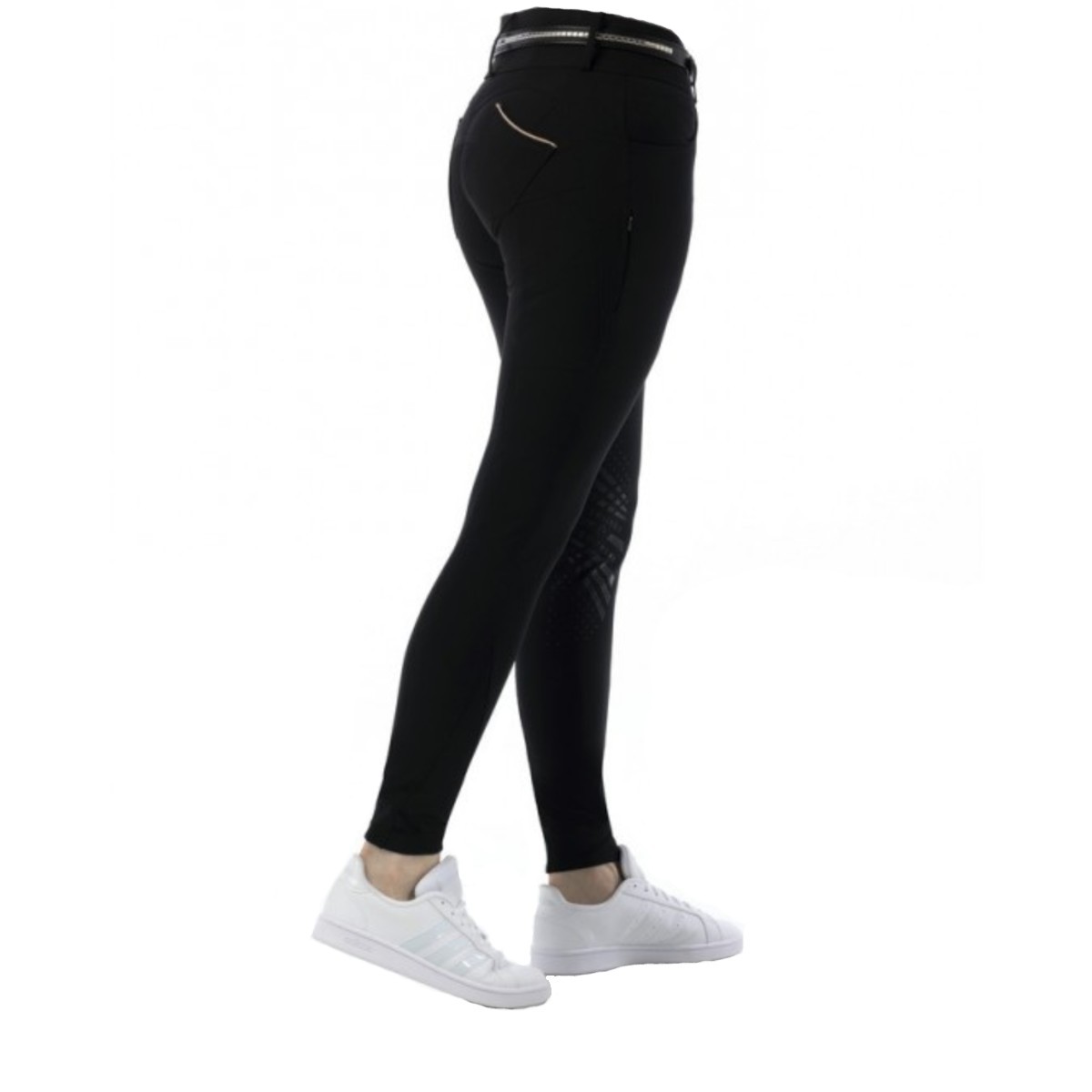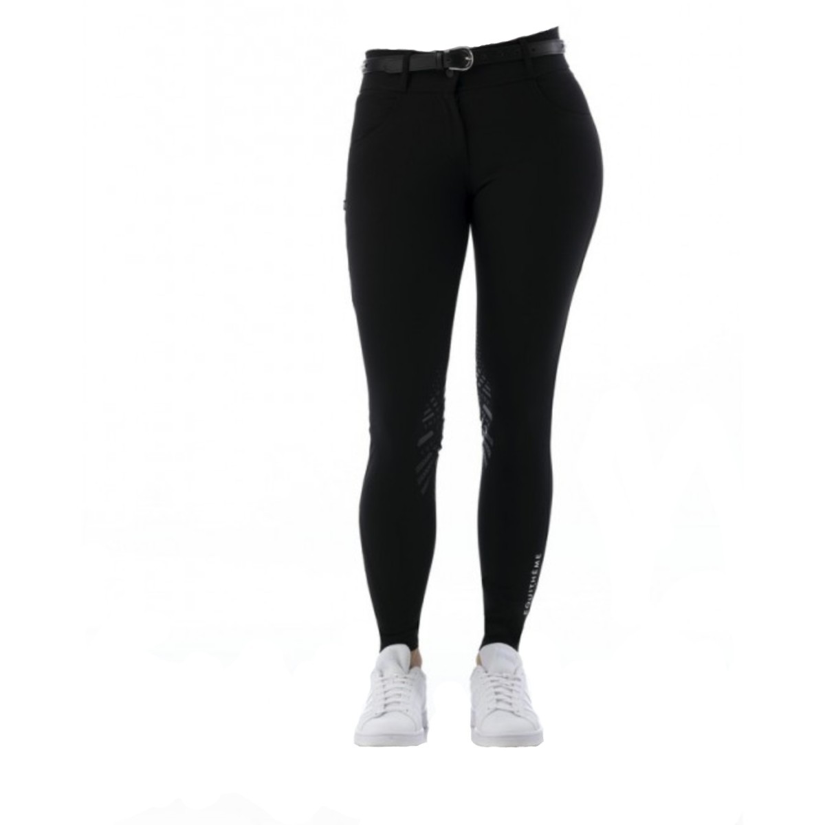 Бриджи с силиконовой коленной леей (Breeches with Silicone Knee Patch). Силиконовая лея предполагает отсутствие лишних швов в зоне колен и обеспечивает наибольшую фиксацию в седле. Материал комфортный для тела, "дышащий", эластичный, подчеркнет вашу фигуру. Есть передние карманы для рук и задние карманы, украшенные блестящей тесьмой. В области щиколотки имеется эластичная вставка для удобства одевания. Присутствует белая надпись Equitheme на данной вставке (на левой ноге). Рекомендуется машинная стирка при температуре 30 градусов.