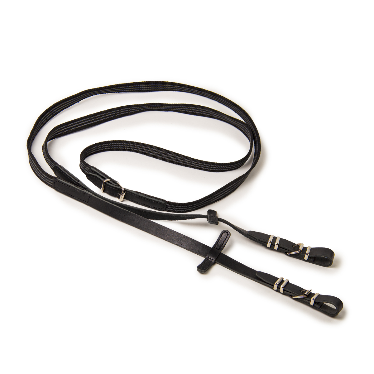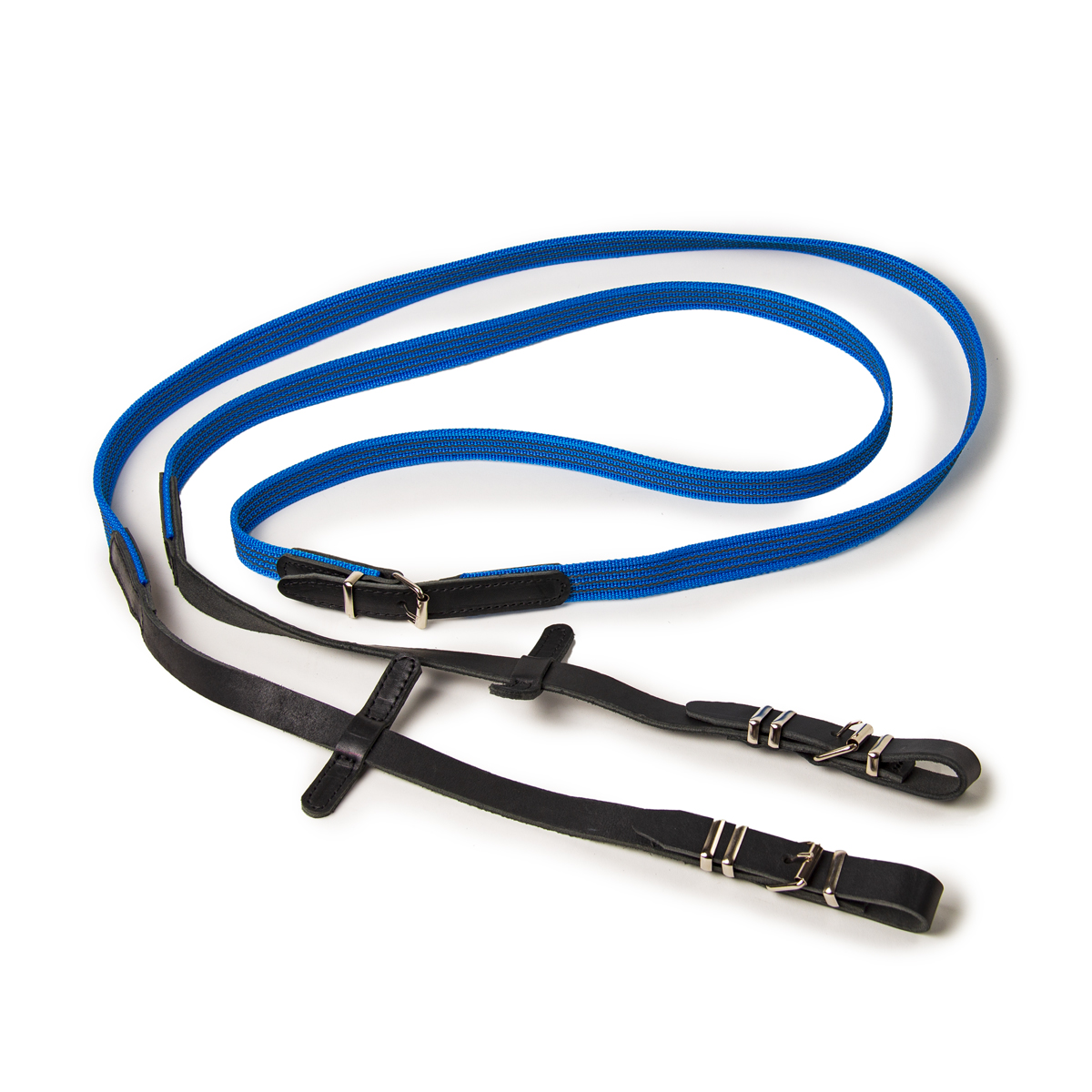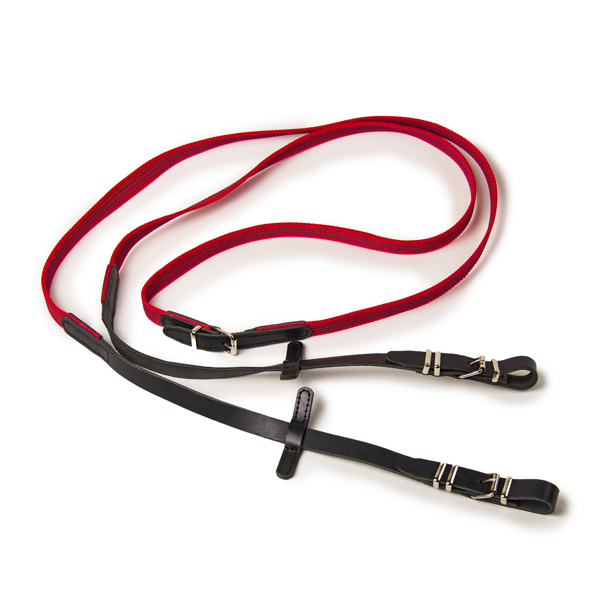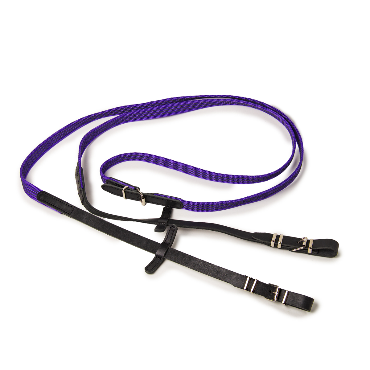 Прорезиненный цветной повод с кожаными ограничителями. Длина повода: 290 см. Цвет: васильковый, красный, оранжевый, фиолетовый, черный.