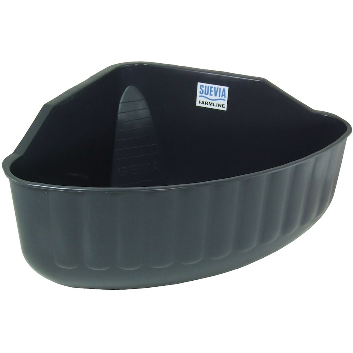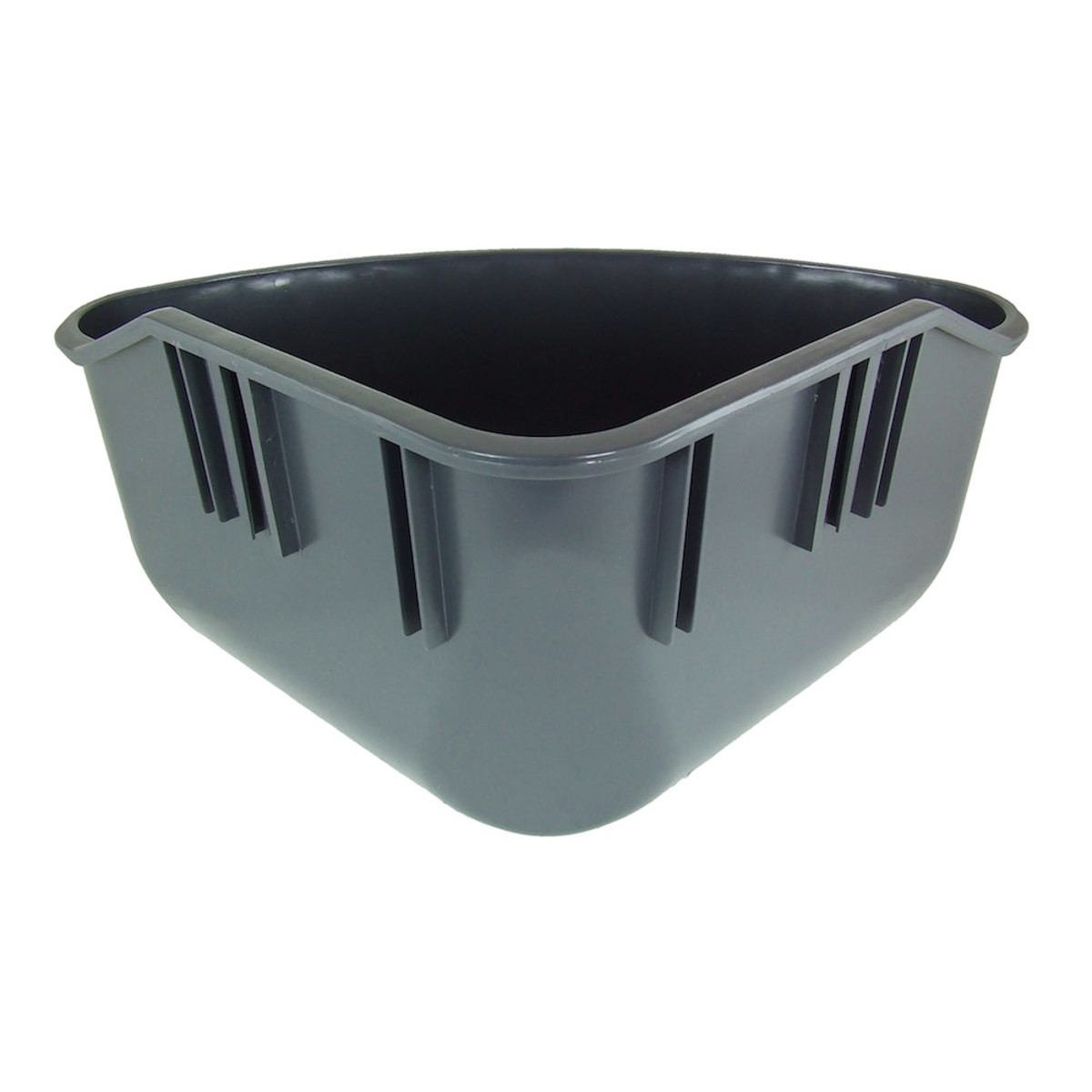 Вместительная 26-литровая угловая кормушка, повышенной прочности благодаря усиленной передней части с рифленым профилем. Округлая форма кормушки внутри позволяет лошади доесть корм до конца и не пораниться. Выполнена из пищевого полипропилена. 100% безопасное кормление. Крепится стационарно (к стенкам денника) или вешается на перегородки с помощью крючков. Крючки в комплект не входят. Кормушка крайне проста в установке, эксплуатации и устойчива к коррозии. Может применяться во всех типах конюшен.