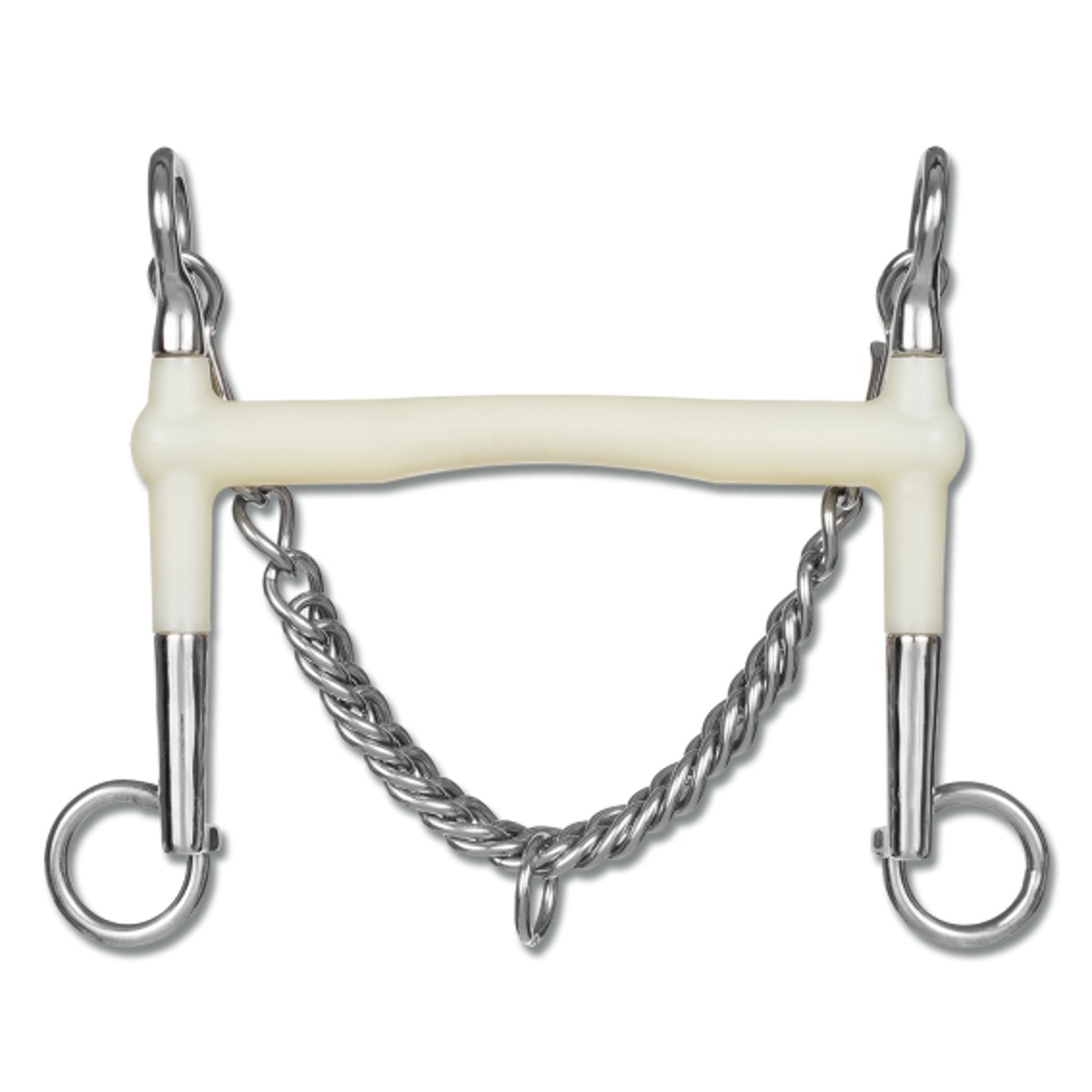 Мундштук (weymonth curb) имеет цельное металлическое грызло с дужками, которые используются в качестве рычагов. Цельность грызла – самое важное свойство, без которого бессмысленно применение рычагом, иначе грызло попросту бы складывалось. Мундштук не может действовать раздельно на левую и правую часть челюсти лошади. Его давление равносторонне. Мундштук используется для опускания головы вниз, поднятия и прямолинейного перемещения шеи – вверх, вперед, вниз