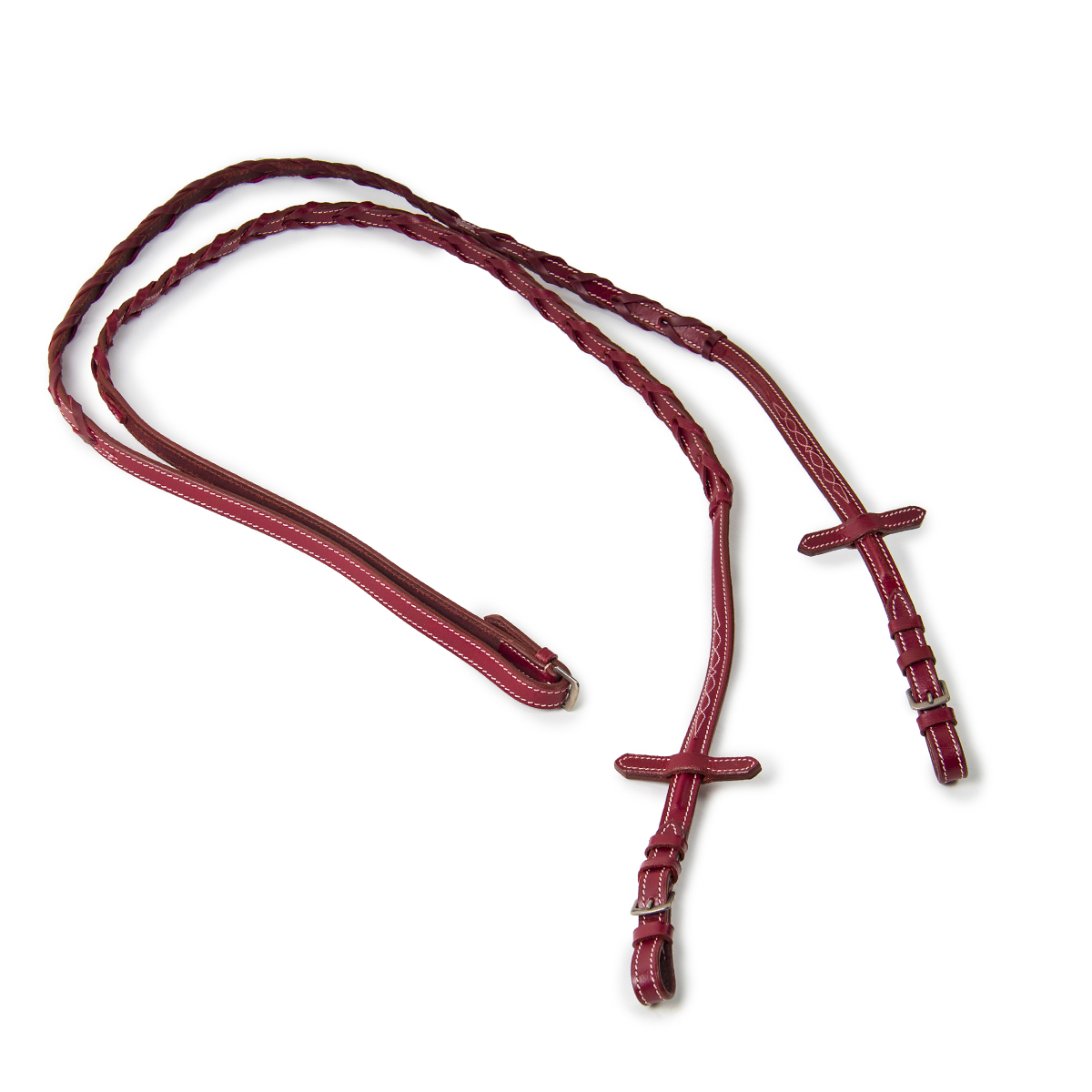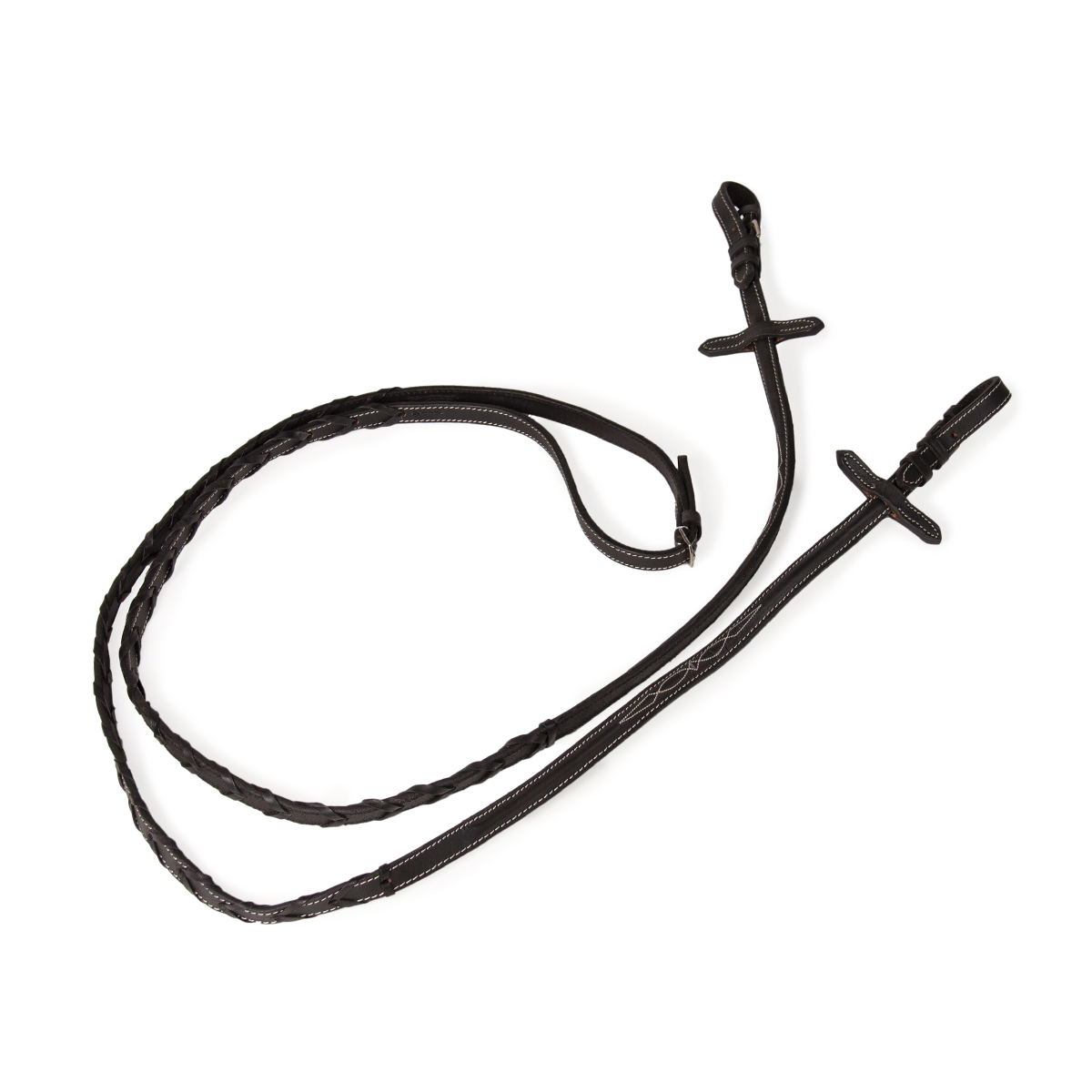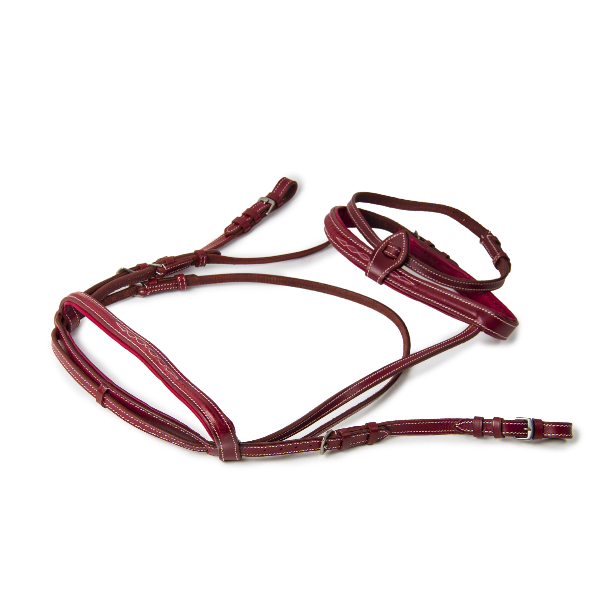 В комплект с оголовьем идет плетеный повод с контрастной отстрочкой из натуральной кожи.