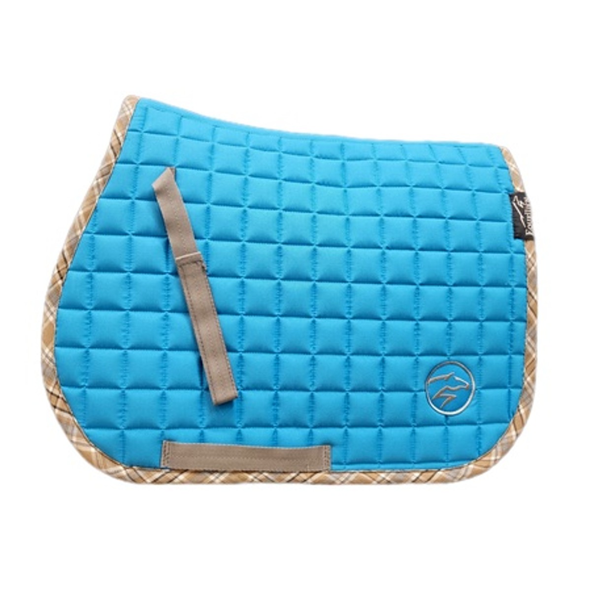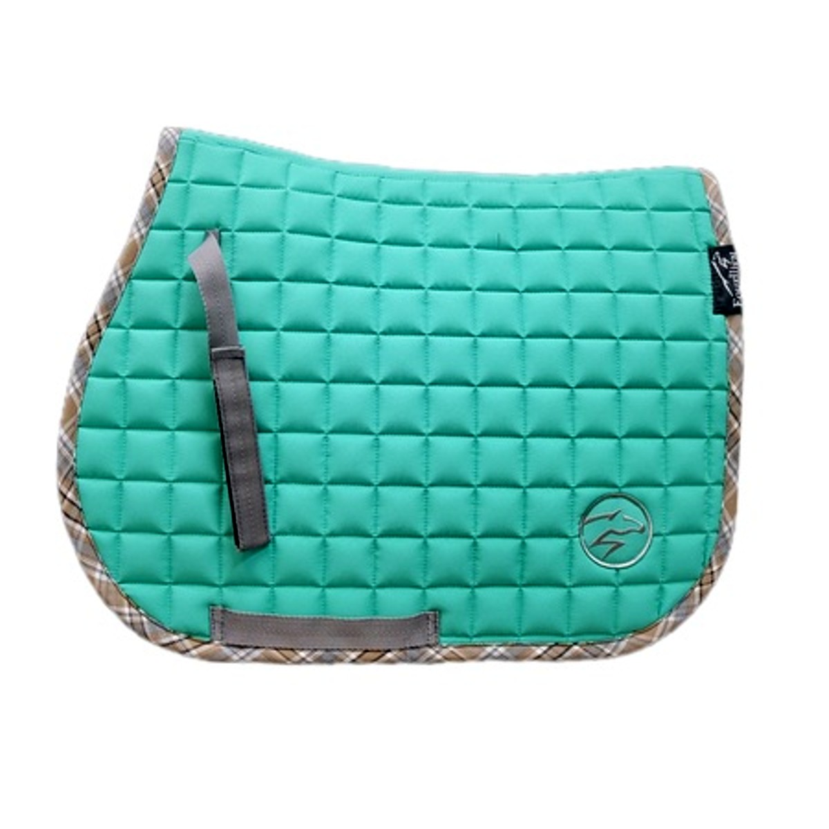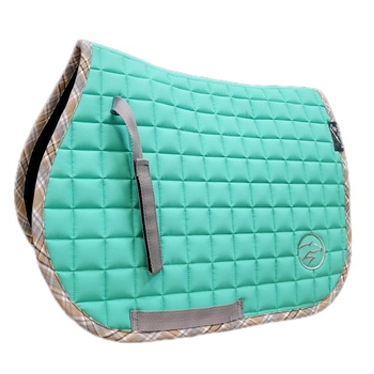 Вальтрап для шетлендского пони "Summer" (Saddle Pad) анатомической формы. Верхняя ткань плотная, но в то же время практически невесомая. Подклад выполнен из натуральной хлопковой ткани черного цвета, которая хорошо впитывает пот лошади, приятная на ощупь и не маркая. Клетчатый кант пастельных тонов придает вальтрапу пикантности и уникальности. Вальтрап украшен вышивкой в виде стилизованной лошади серебристого цвета.