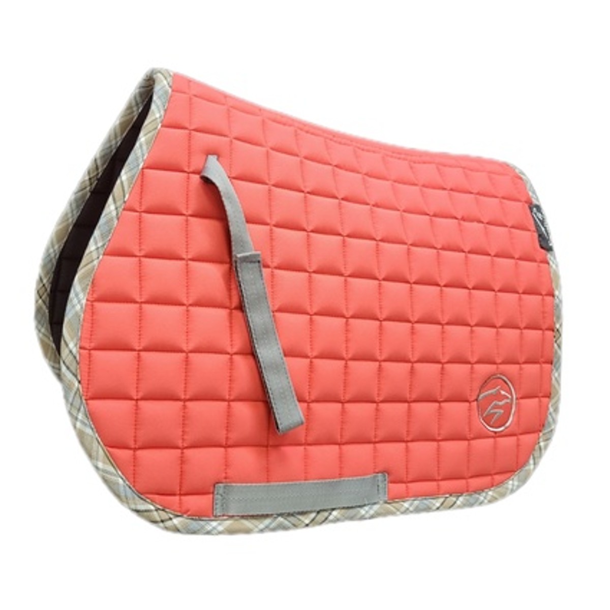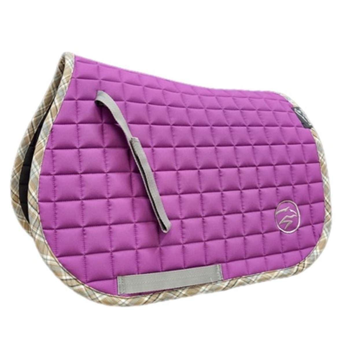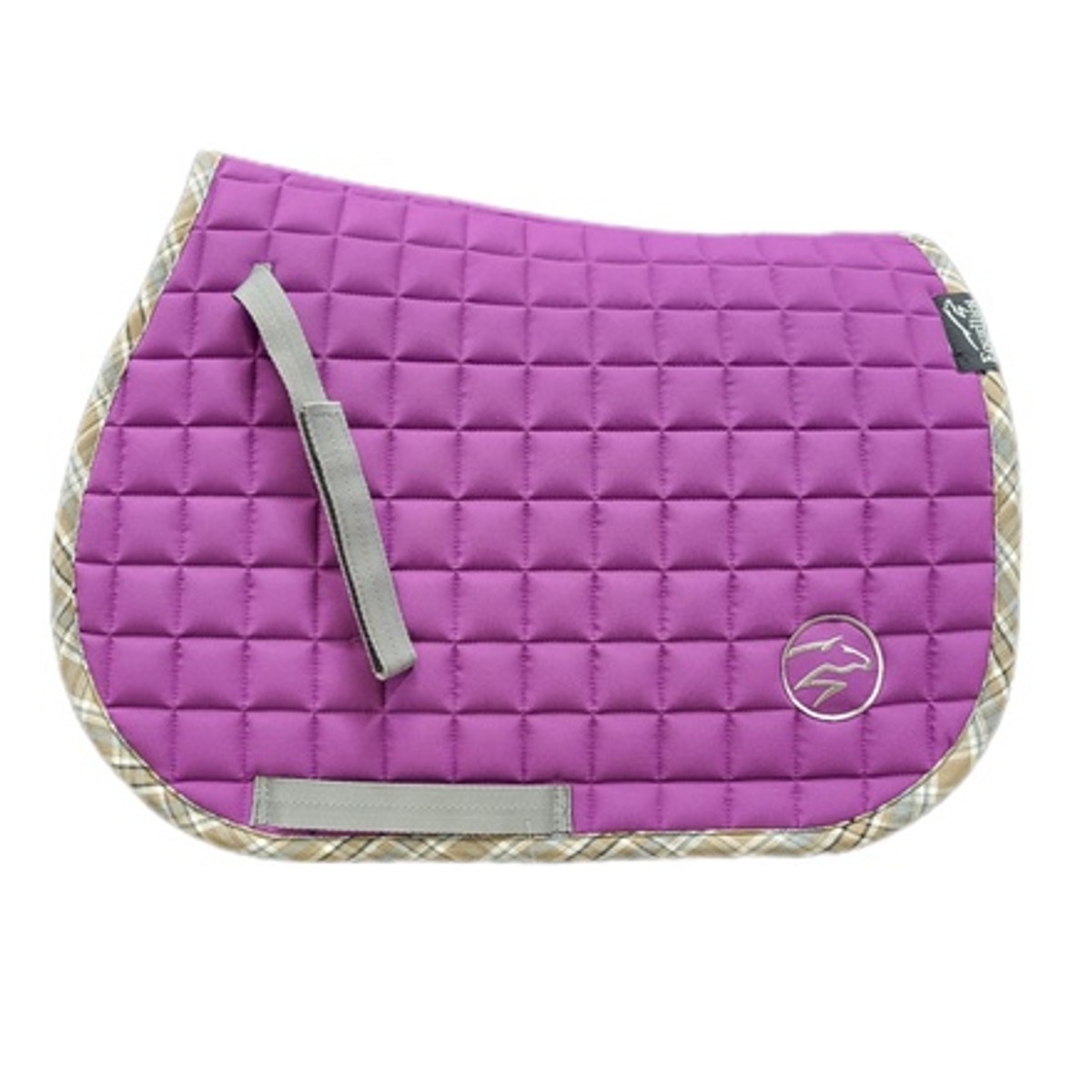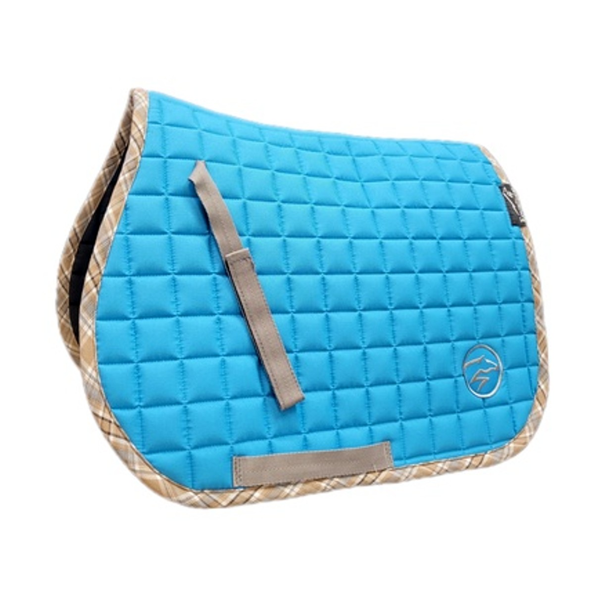 Вальтрап для шетлендского пони "Summer" (Saddle Pad) анатомической формы. Верхняя ткань плотная, но в то же время практически невесомая. Подклад выполнен из натуральной хлопковой ткани черного цвета, которая хорошо впитывает пот лошади, приятная на ощупь и не маркая. Клетчатый кант пастельных тонов придает вальтрапу пикантности и уникальности. Вальтрап украшен вышивкой в виде стилизованной лошади серебристого цвета.