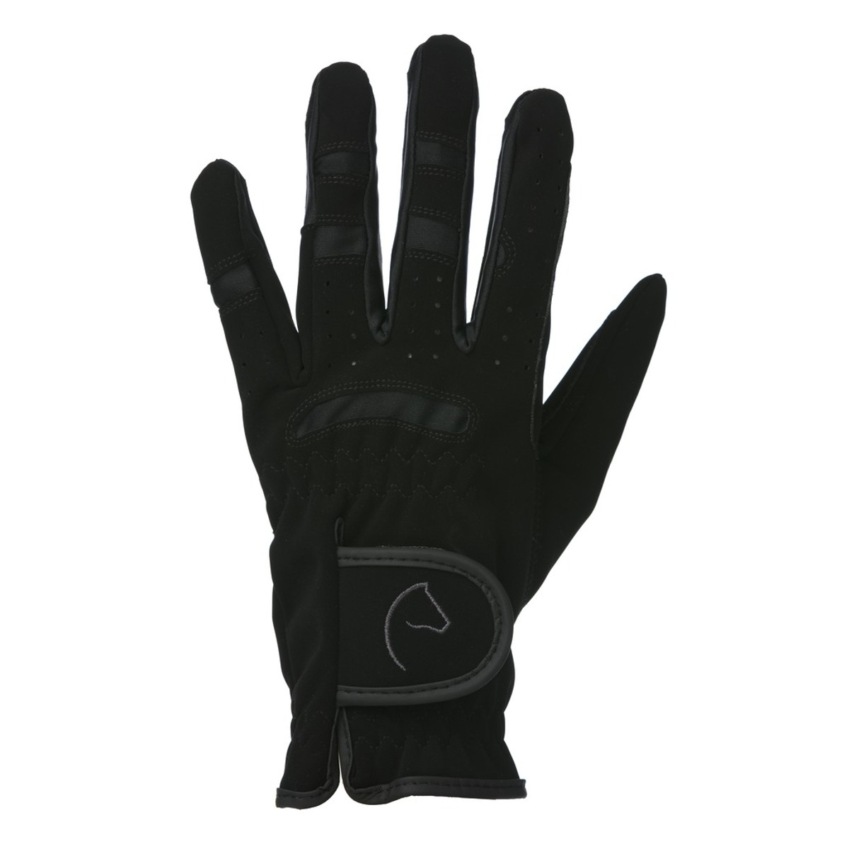 Перчатки для верховой езды (riding gloves). Выполнены из искусственной замши. На запястье застегиваются на липучку. Манжеты на резинке для большего облегания в области запястья. Логотип EQUITHÈME на клапане. Вентиляционные отверстия на пальцах и удобные ластовицы в области суставов для большего комфорта и гибкости. Перчатки не стесняют движения. Удобные и износостойкие.