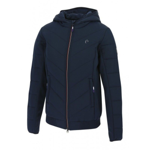 Теплая стильная куртка (jacket) для верховой езды капюшоном. Вставки на внутренней стороне рукавов и спине выполнены из плотного, дышащего материала, который хорошо отводит влагу. Куртка выполнена из стеганного полиэстера с наполнителем, плотно прилегает к телу. Оснащена капюшоном, внутри которого мягкая ткань, которая хорошо сохраняет тепло. Косая резинка по низу рукавов и резинка по низу куртки служат защитой от ветра. Куртка застегивается на молнию с двумя бегунками. 2 наружных кармана и один внутренний карман на молниях.