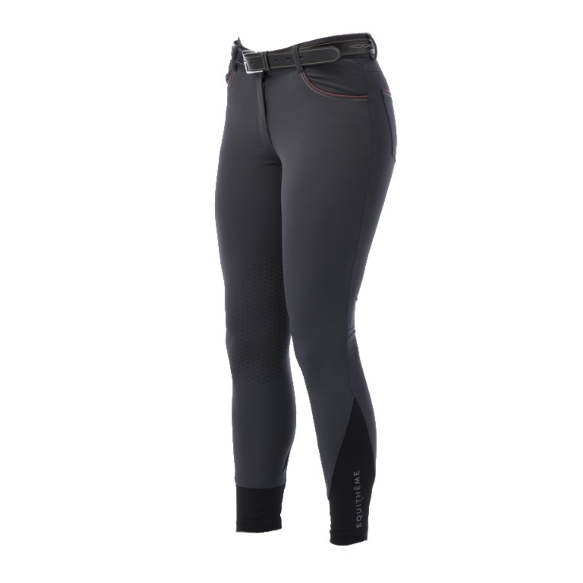 В области щиколотки имеется эластичная вставка для удобства одевания. Присутствует белая надпись Equitheme на данной вставке (на левой ноге).