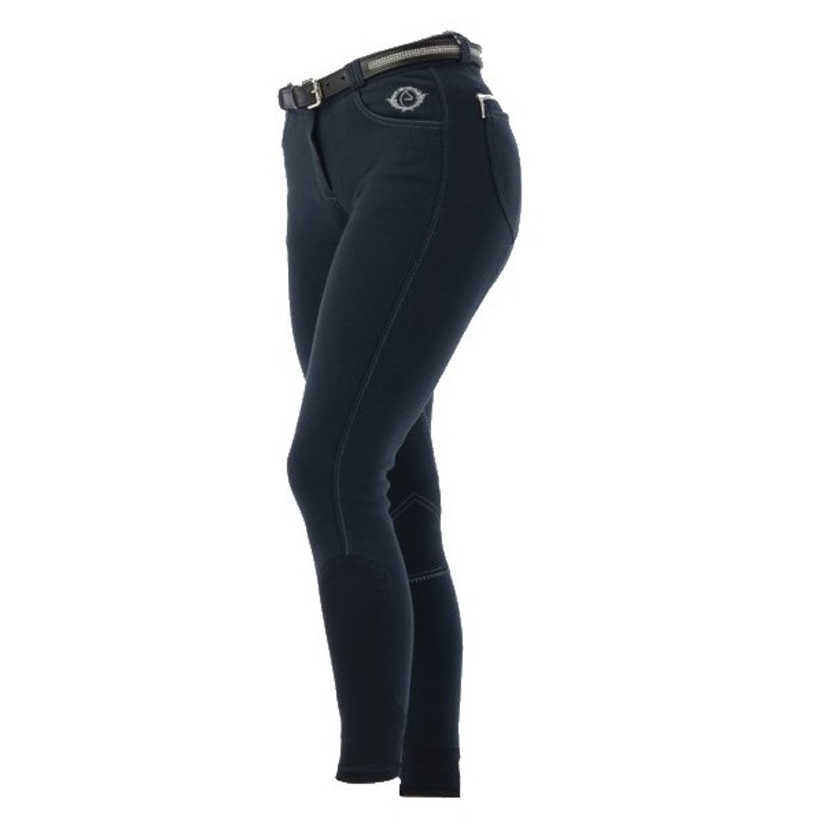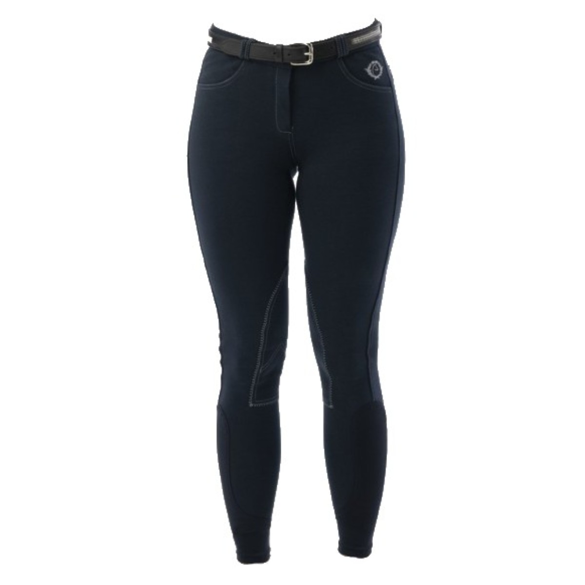 Бриджи (Breeches) с коленной трикотажной леей, что позволяет предотвратить натирание. Есть два передних кармана и два задних, на одном прострочка в виде венка со стразами. Бриджи имеют контрастную прострочку. Внизу эластичная вставка для удобства одевания.