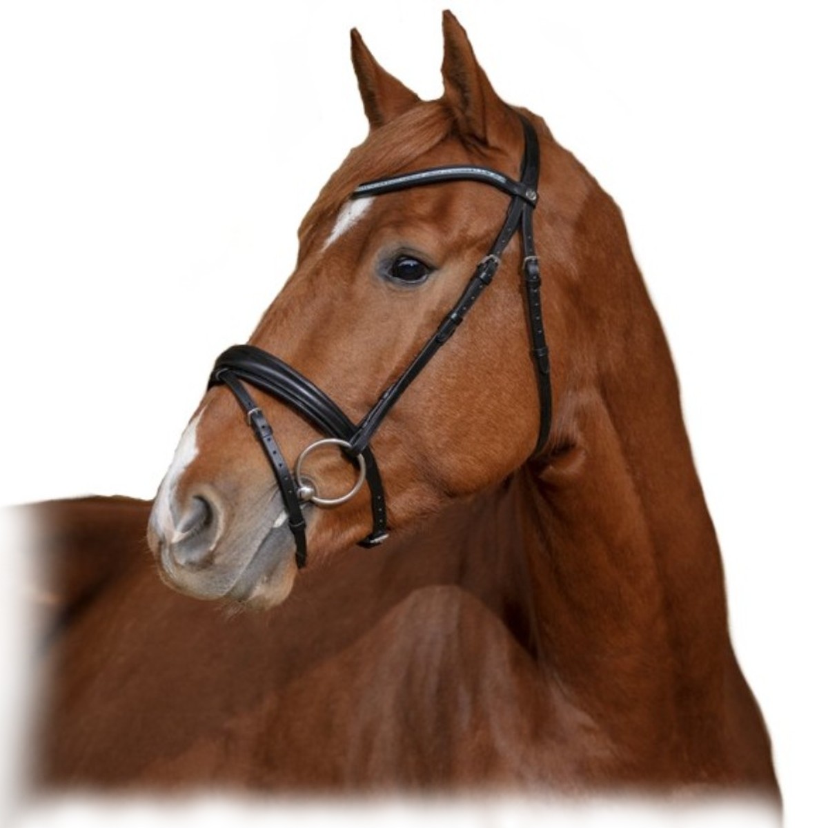 Оголовье из натуральной кожи (Leather Bridle). Затылочный ремень анатомической формы. Блестящий лакированый кант на капсюле. Налобник украшен тонкой голубой лентой и блестящими стразами. Нащечные ремни на крючках. Фурнитура серебряного цвета. Трензель и повод в комплект не входят.