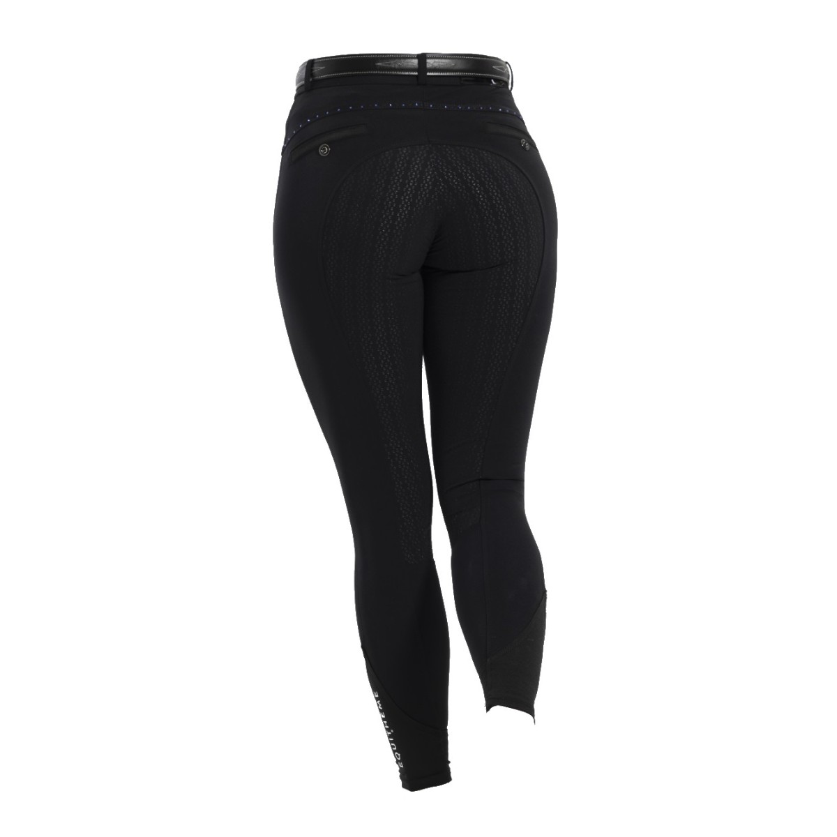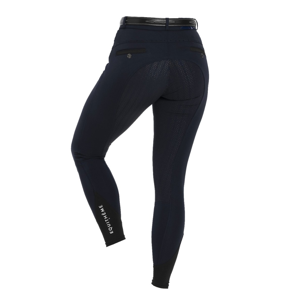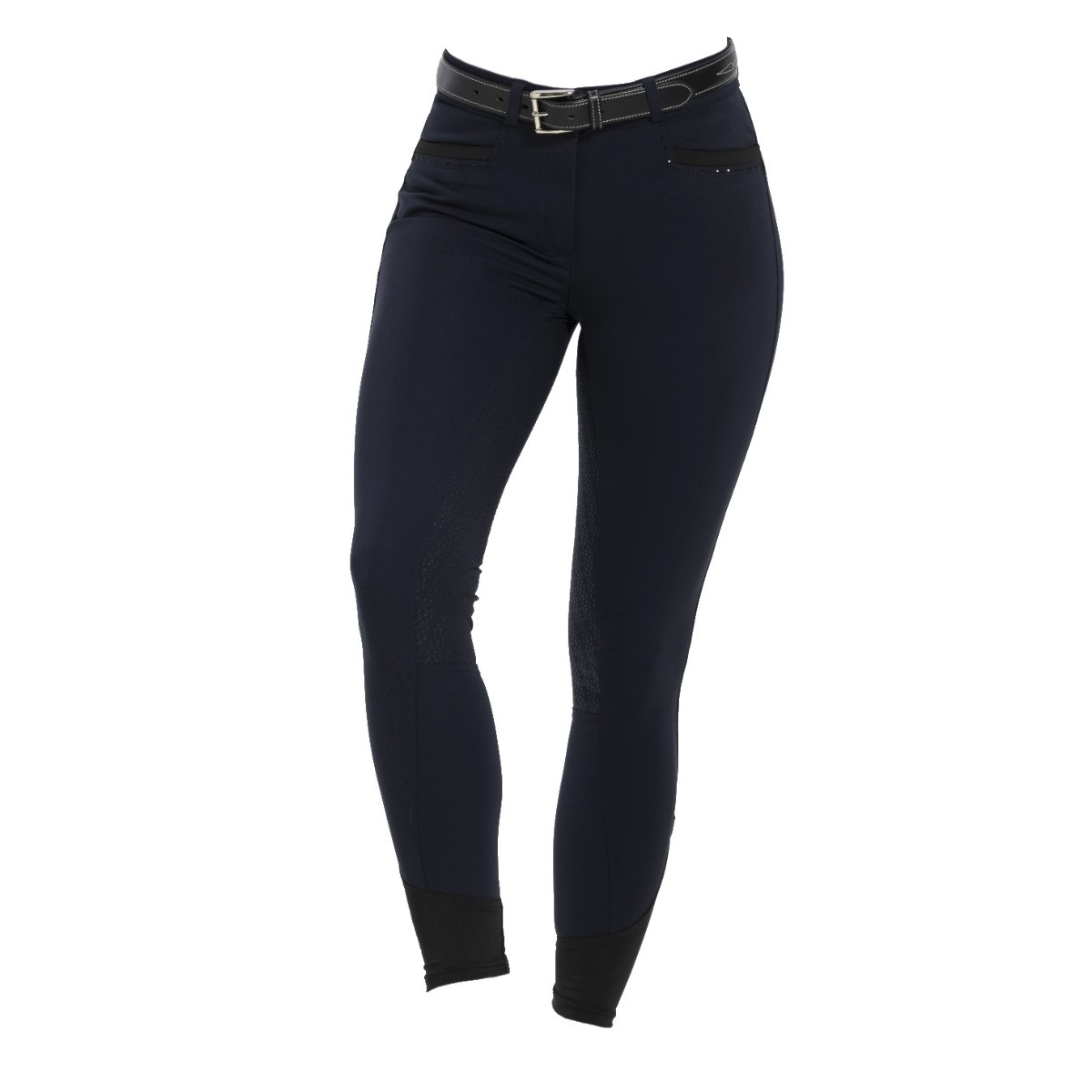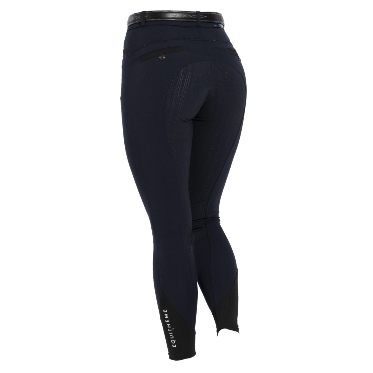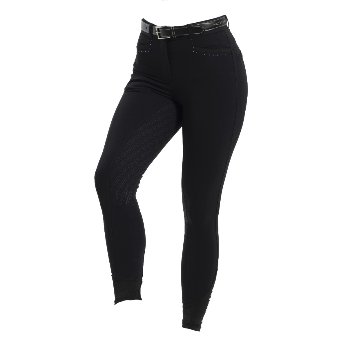 Удобные бриджи с полной силиконовой леей (Breeches with Coton Knee Patch). Силиконовая лея обеспечивает наибольшую фиксацию в седле. На поясе петли для ремня. Застёгиваются на молнию и брючный крючок. Два передних кармана и сзади имитация карманов. Все карманы с окантовкой из страз. В области щиколотки имеется эластичная вставка для удобства одевания. Присутствует белая надпись Equitheme на данной вставке (на левой ноге). Рекомендуется машинная стирка при температуре 30 градусов. Не сушить в стиральной машине.