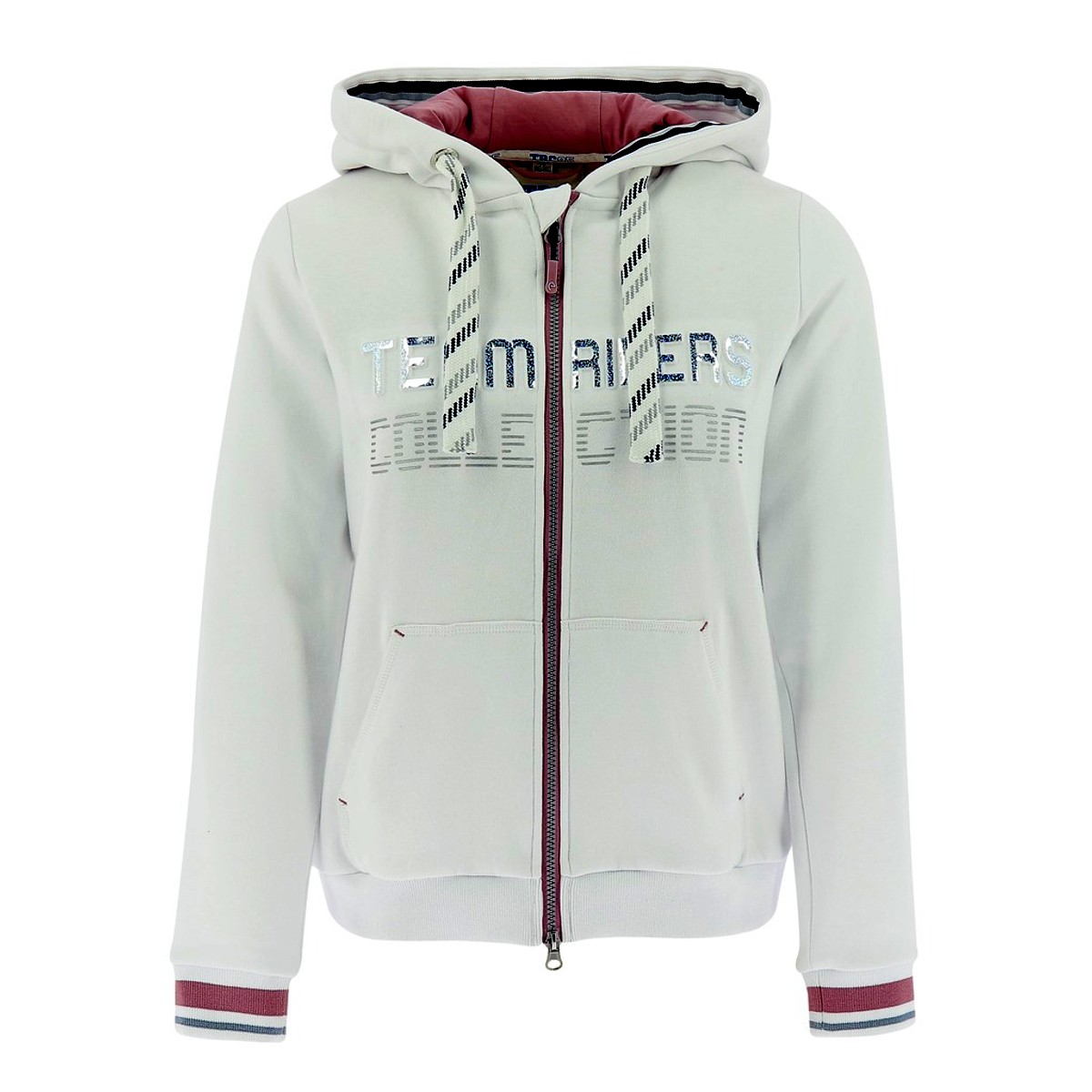 Удобная спортивная женская толстовка «OLOL» (Women's sweatshirt) на флисе. Толстовка изготовлена из трикотажного хлопка с добавлением полиэстера. Полиэстер увеличивает прочность трикотажа, сохраняя при этом все свойства хлопка. Толстовка хорошо пропускает воздух. Очень мягкая и приятная для кожи. Эластичная, не сковывает движения. Передняя молния контрастного серого цвета с розовой окантовкой. Два кармана на молнии. Нижняя часть толстовки и рукава с эластичной резинкой. На груди и на спине декоративные надписи.