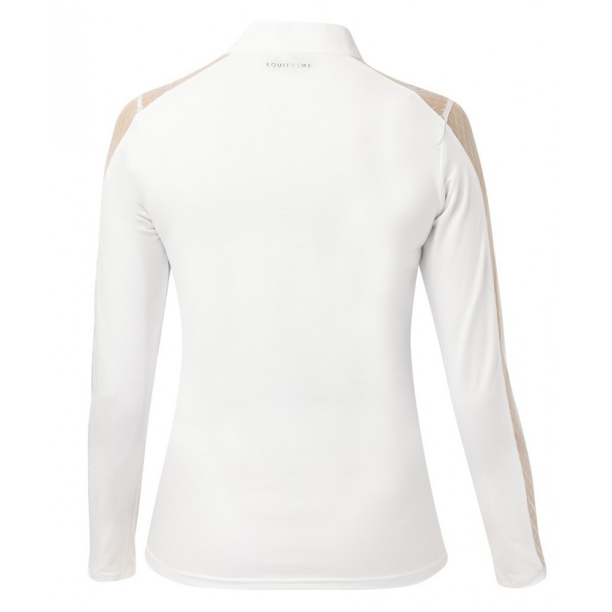 Тонкая блуза для выступлений (Competition Shirt) с приталенным силуэтом, длинным рукавом и воротничком-стойкой. Выполнена из эластичной лёгкой дышащей ткани. Застегивается на кнопеи, спрятанные под планкой. Блуза украшена кружевной вставкой от воротника до манжет.