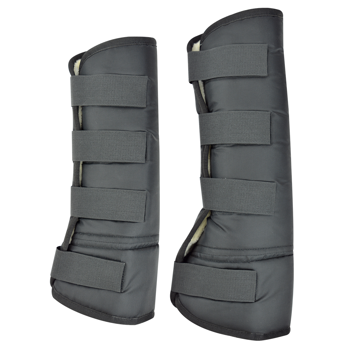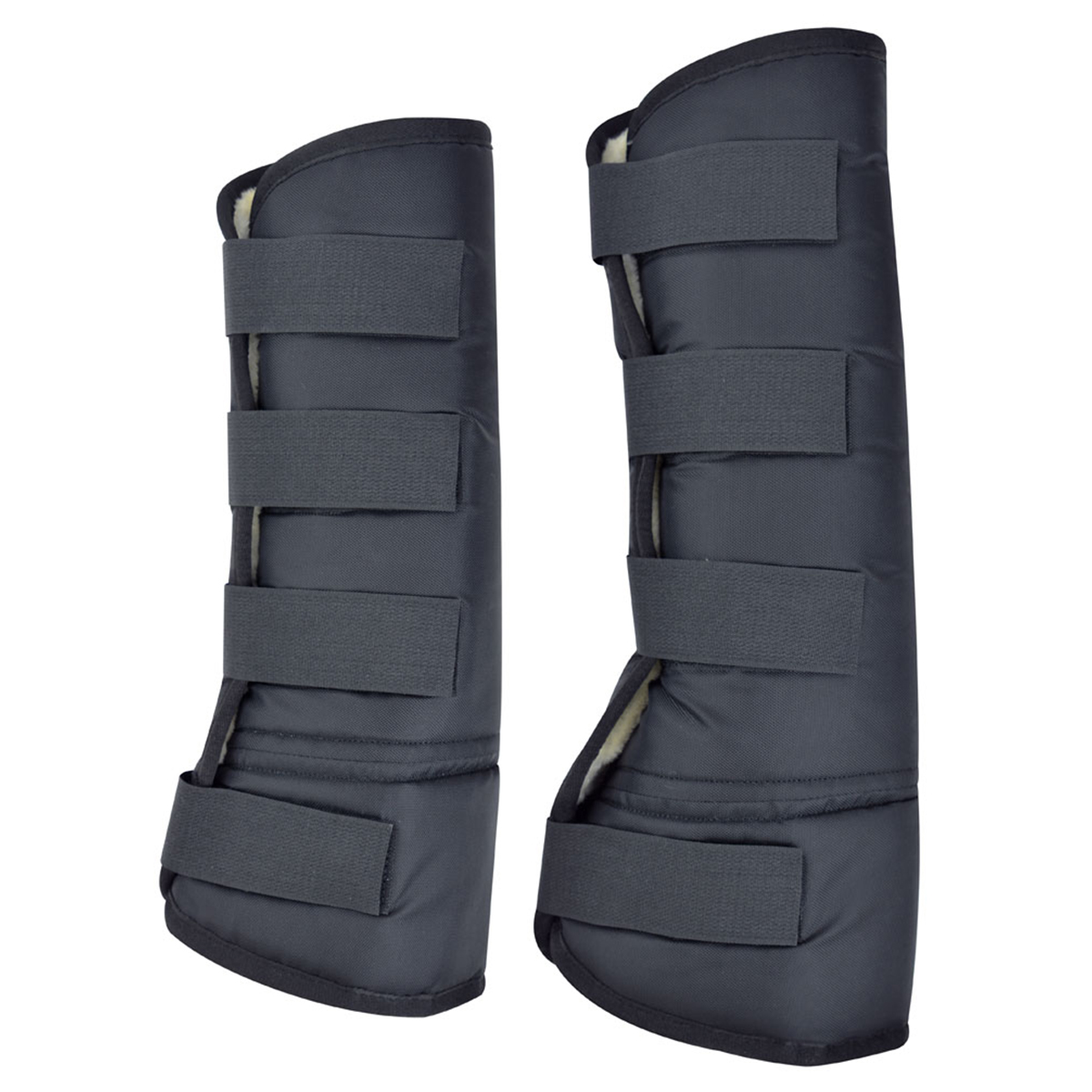 Прочные и мягкие транспортировочные ногавки (Travel boots) для защиты ног лошади. Изготовлен из полиэстера плотностью 500 ден, наполнитель из поролона 12 мм, подкладка из синтетической овчины. Застегиваются на 4 липучки.
