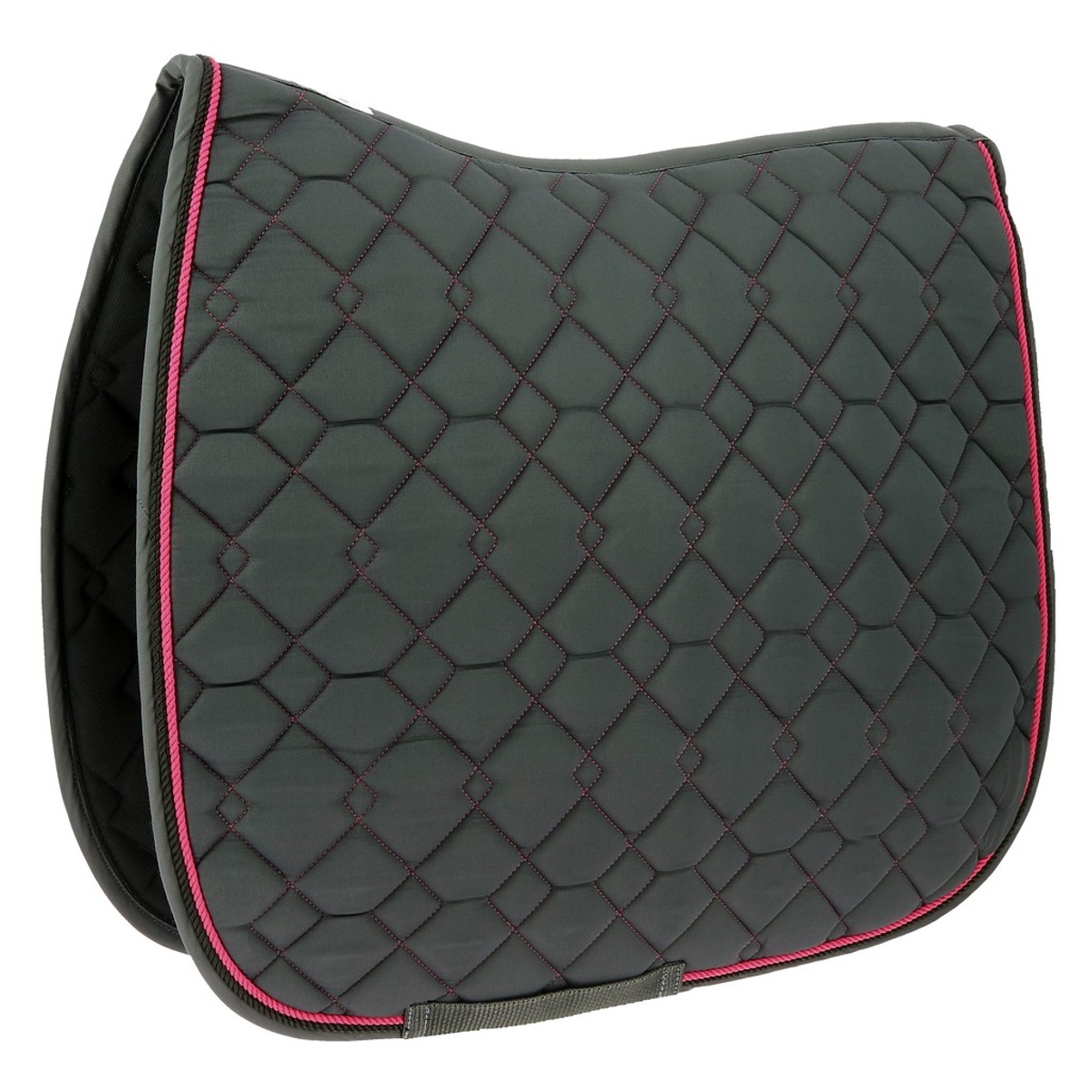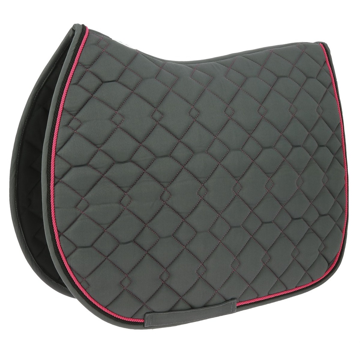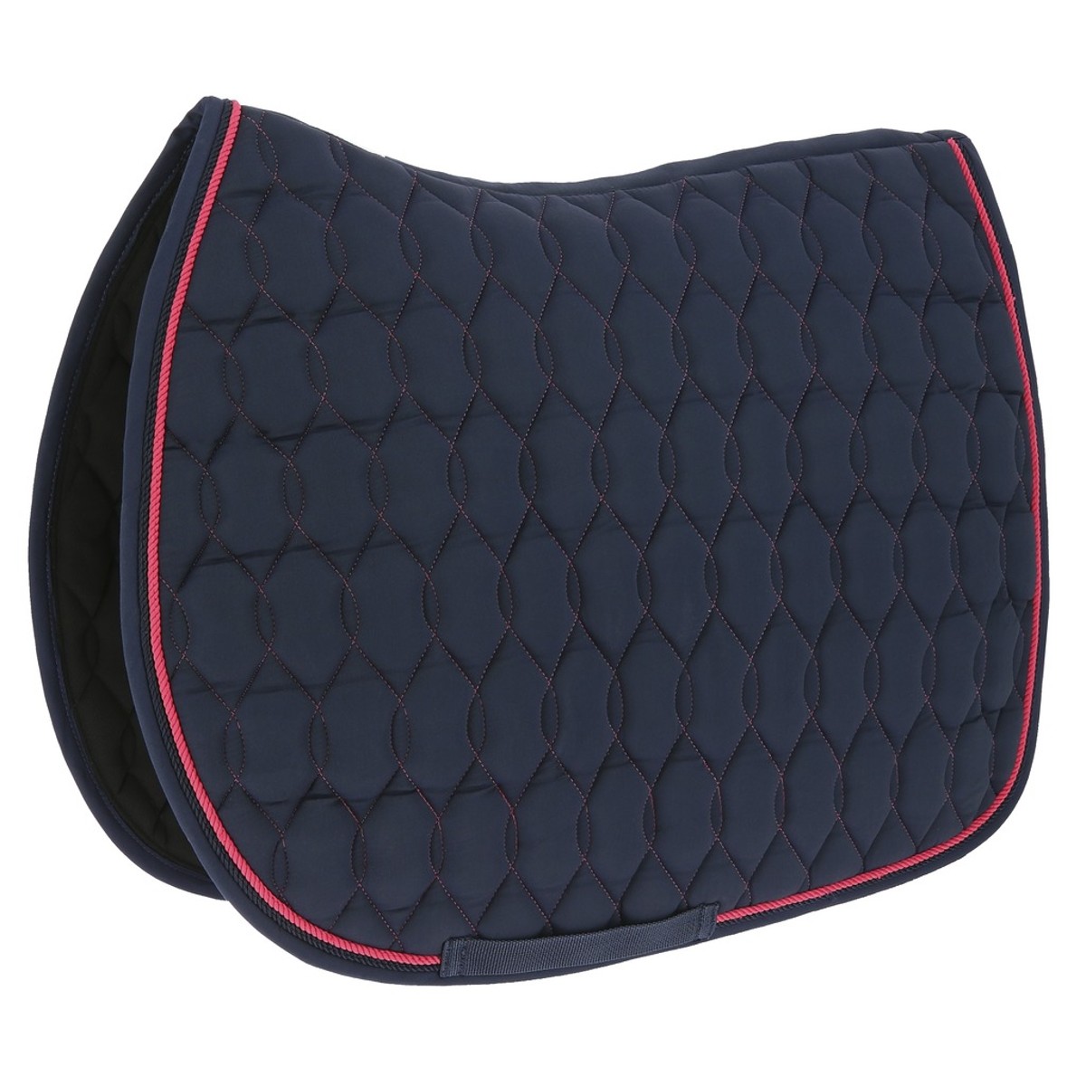 Вальтрап (Saddle Pad) анатомической формы. Дышащая сетчатая подкладка гарантирует превосходное поглощение влаги. Наполнитель из поролона и синтепона делает вальтрап объемным, что очень важно для амортизации. Вальтрап из плотной ткани, украшен двойным декоративным шнуром и фигурной отстрочкой. Вальтрап хорошо держит форму и легок в уходе.