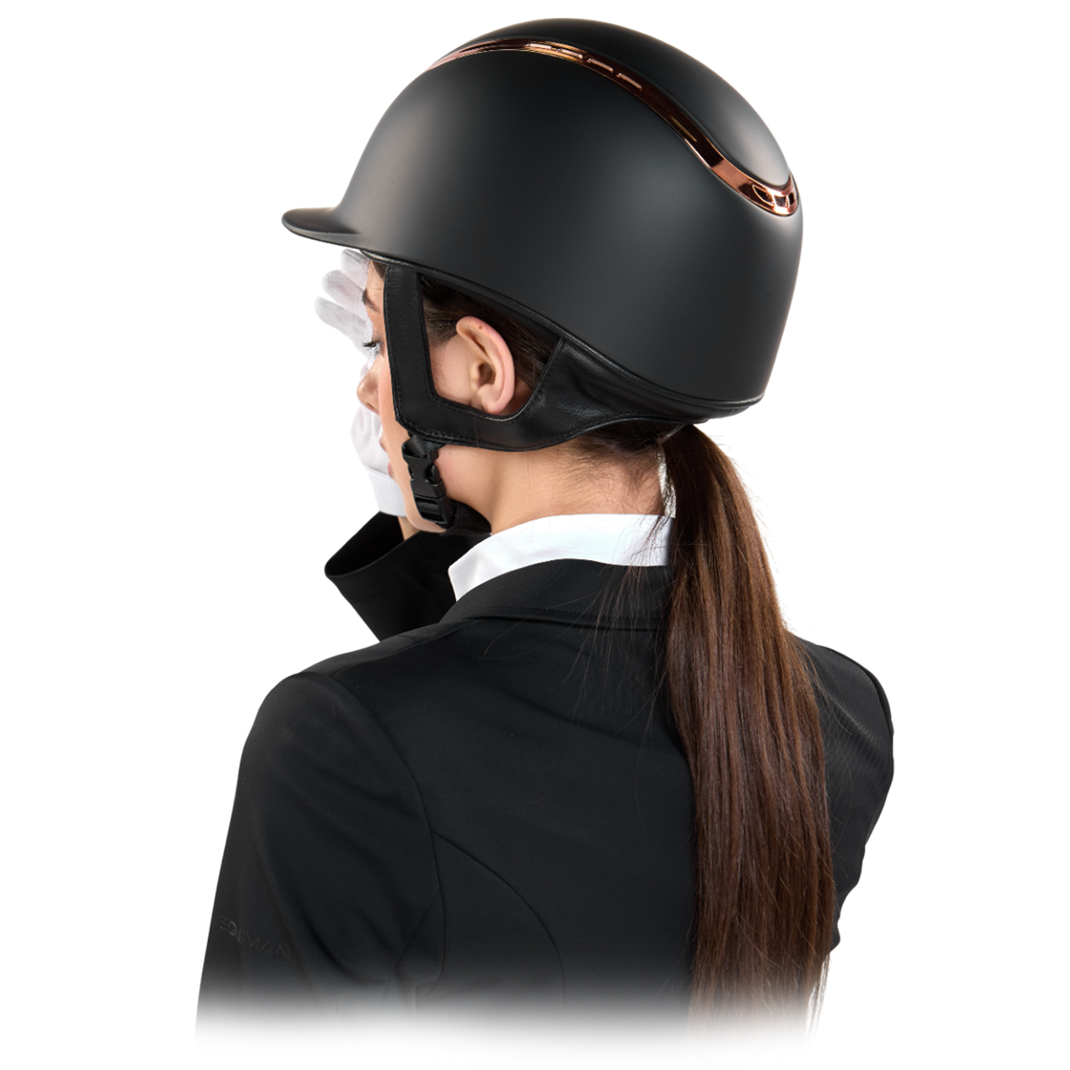 Легкий пластиковый регулируемый шлем (adjustable helmet for rider) с хорошей вентиляцией будет незаменим для верховой езды. Шлем сочетает в себе элегантный внешний вид с практичностью и функциональностью, высокую гарантию безопасности и легкий вес. Так как форма головы у каждого человека индивидуальна, шлем должен быть регулируемым и по ширине, и по высоте. В одно мгновение параметры шлема данной модели можно скорректировать с точностью до миллиметра. Также регулировка размера позволяет приобрести шлем "на вырост", что очень важно при покупке шлема для ребенка. Опять же благодаря системе регулирования возможно корректировать размер шлема в зависимости от сезона: зимой достаточно немного ослабить шлем, чтобы носить его с подшлемником. Размер шлема регулируется элементами "Системы быстрой адаптации " (FAS - Fast Adapting System) на подбородной и в затылочной частях, все детали которых выполнены из мягкого материала, что предотвращает натирание. Внутренняя подложка легко снимается и стирается.