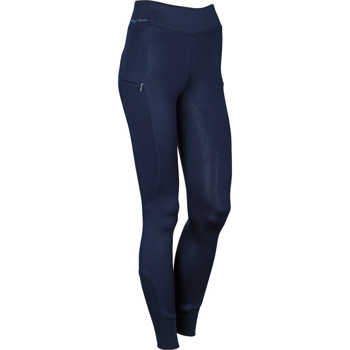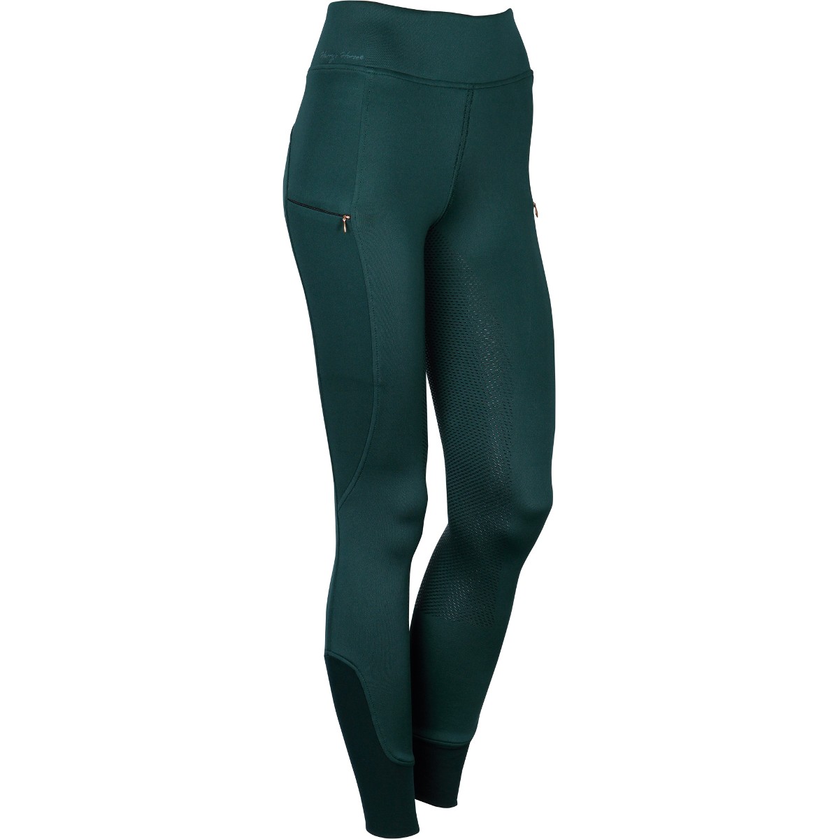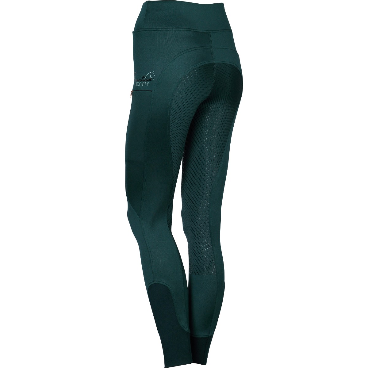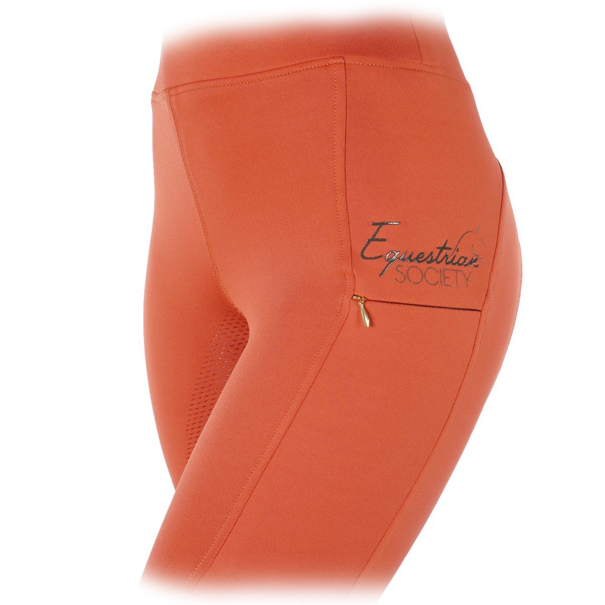 Леггинсы с полной силиконовой леей (Breeches with Silicone Knee Patch). Силиконовая лея предполагает отстутствие лишних швов в зоне колен и обеспечивает наибольшую фиксацию в седле. Материал комфортный для тела, "дышащий", эластичный. На бедрах два кармана на молнии. В области щиколотки эластичная вставка.