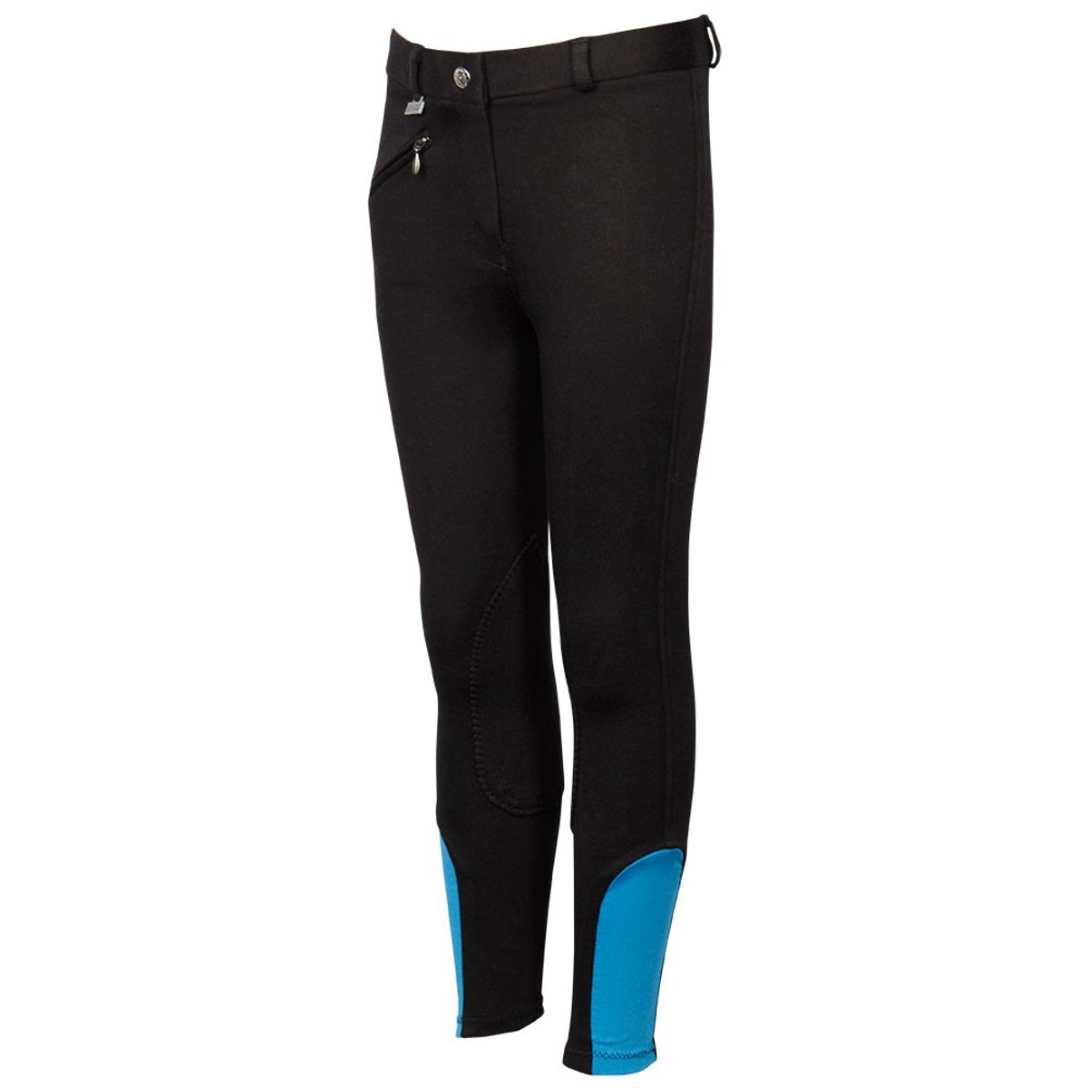 Детские трикотажные бриджи (Breeches) с тканевой коленной леей идеально подходят для ежедневного использования в верховой езде. Талия средней высоты хорошо закрывает поясницу. Спереди один косой карман на молнии. На поясе имеются петли для ремня. Снизу эластичный "чулок", вместо привычной засежки на липучке. Чулок позволяет легко отрегулировать бриджи по длине, а так же упрощает одевание бриждей под гольфы или краги.