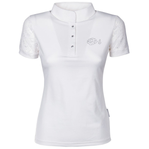 Тонкая рубашка для выступлений (Competition Shirt) с приталенным силуэтом, коротким рукавом из кружева и воротничком-стойкой. Выполнена из эластичной лёгкой дышащей ткани. Спереди застегивается на кнопки - кристаллы. На груди и спине логотип в виде розы, украшенной стразами. Кружевная вставка на спине.