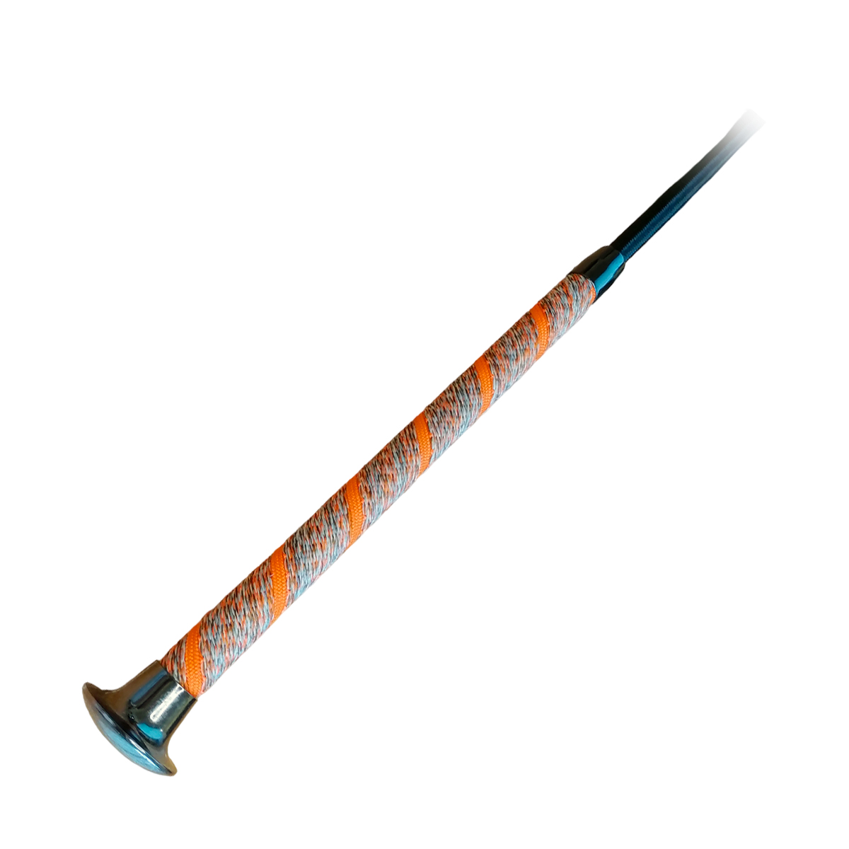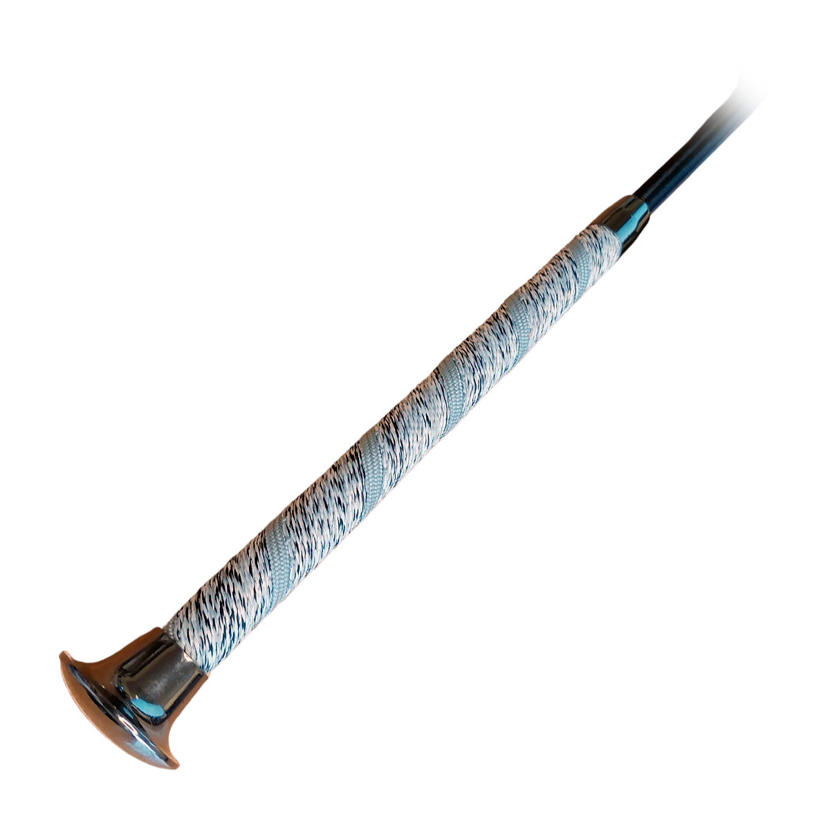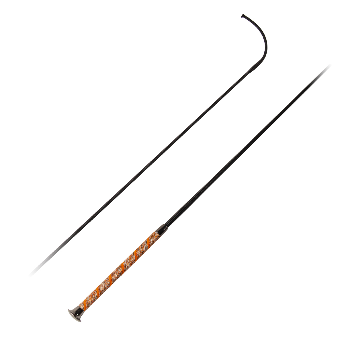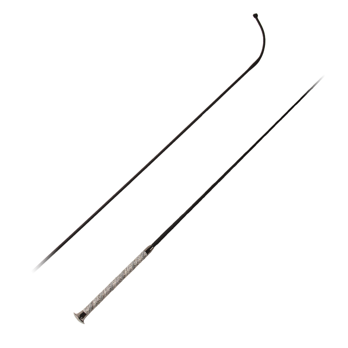Выездковый хлыст (dressage whip) с нескользящей текстильной ручкой. Наконечник из металлопластика серебристого цвета. Оплетка - тесьмяный шнур.