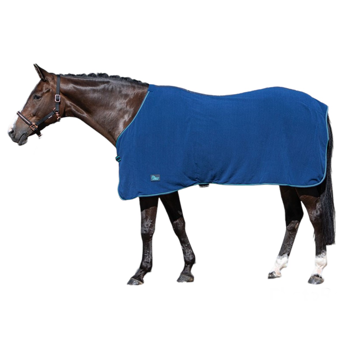 Флисовая попона с попонодержателем (Fleece rug) имеет хорошее водопоглощение, может использоваться для сушки в деннике. Подбрюшный ремень, петля для хвоста в задней части попоны предотвращают ее сползание. На груди застегивается на ремень с пряжкой и липучку. Фурнитура серебряного цвета.
