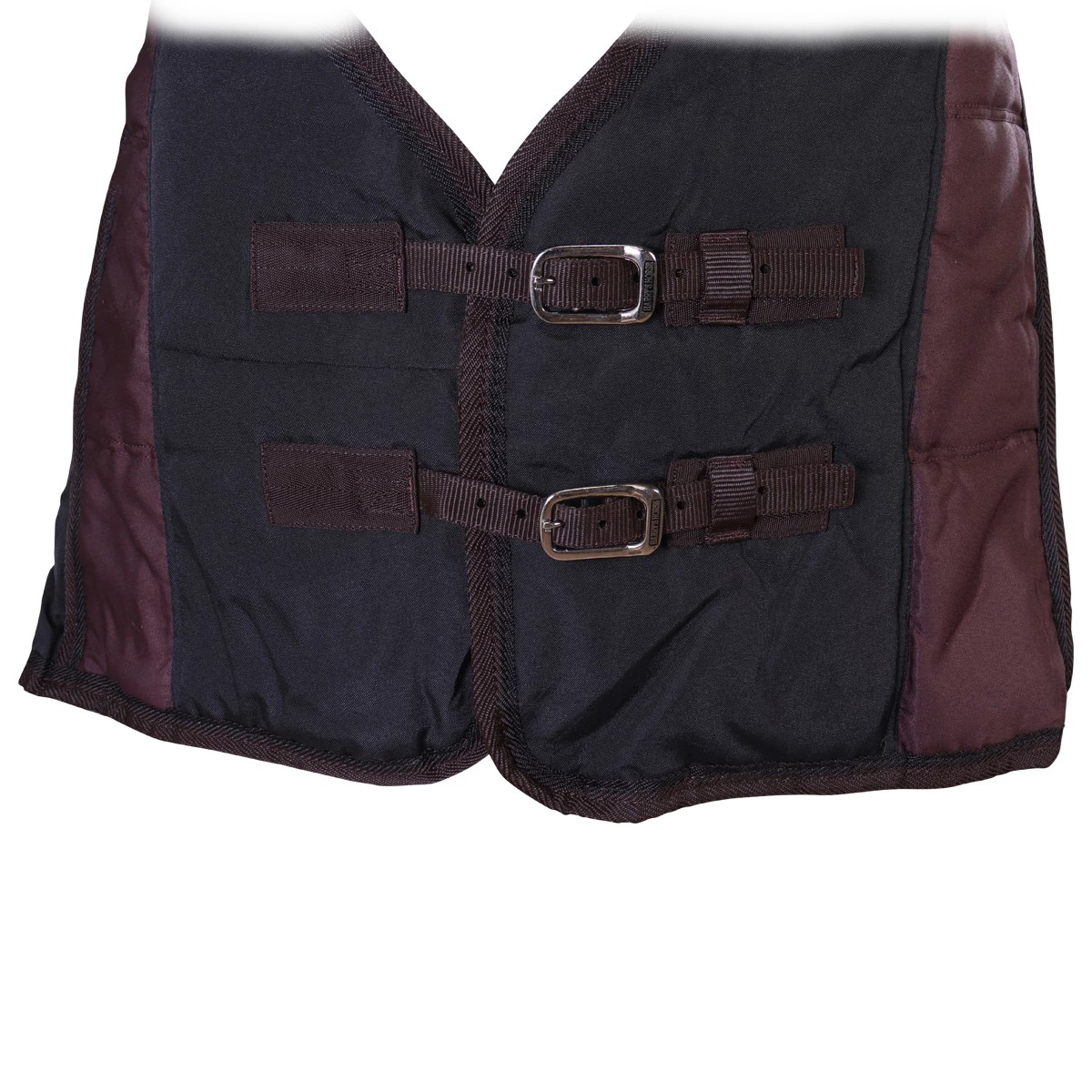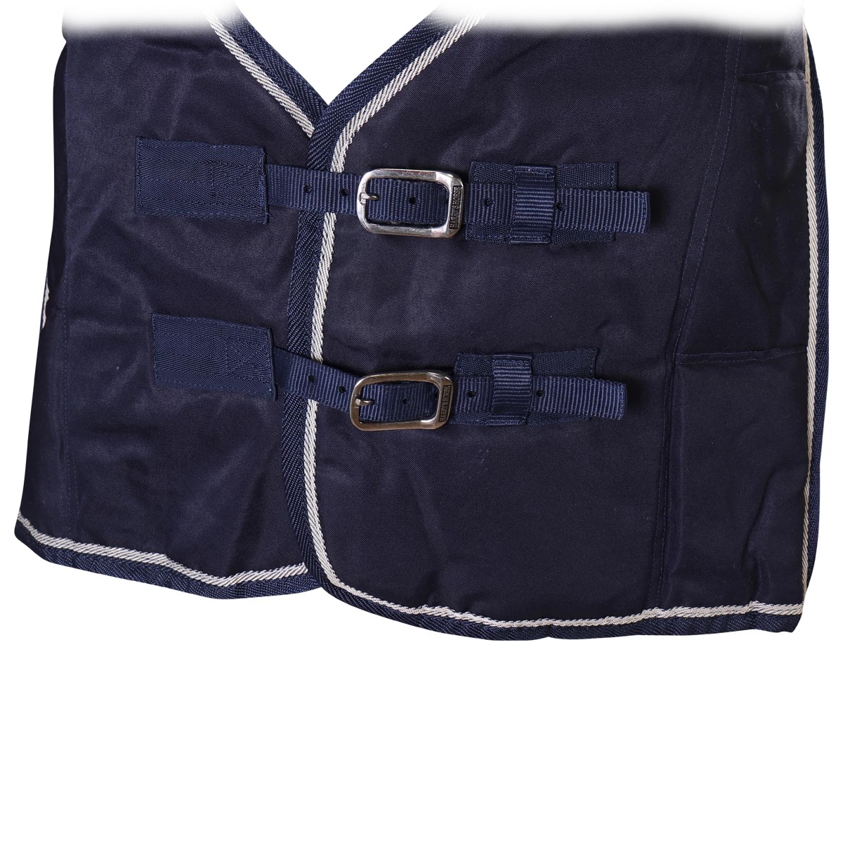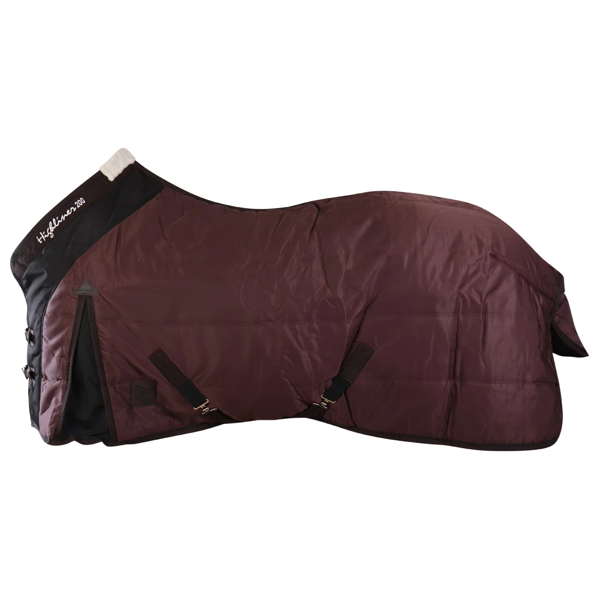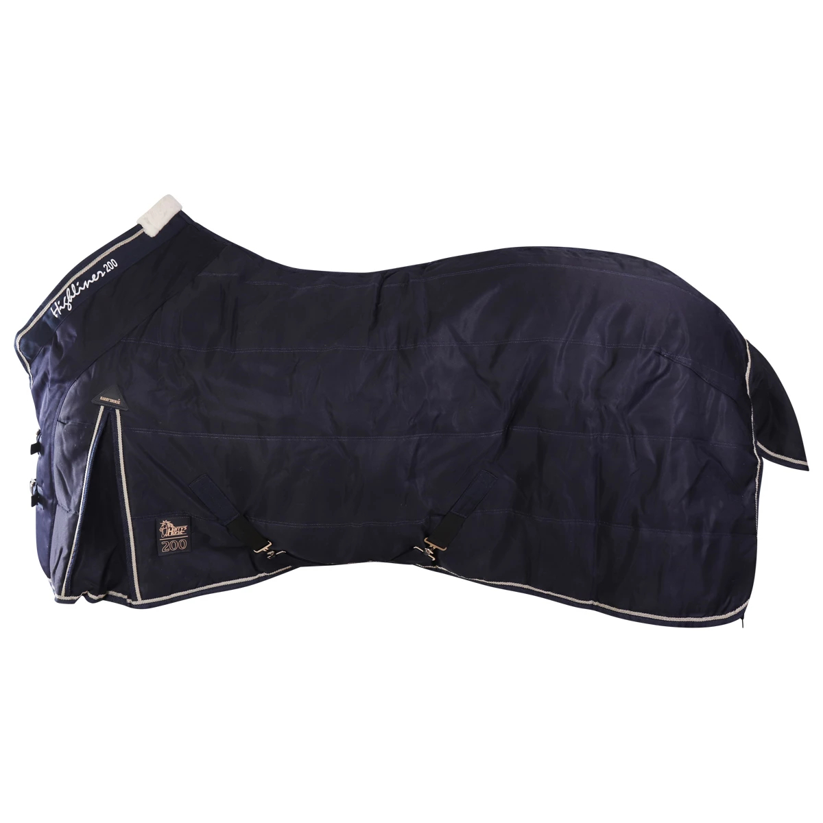Зимняя попона (Winter Blanket) из полиэстера плотностью 300D, водонепроницаемого прочного и износостойкого материала с наполнителем из полифилла согреет вашу лошадь в холодное время года. Утеплитель нового поколения - импортный материал Полифилл (Polyfill) - это новый высокоэффективный, обладающий повышенной устойчивостью к сжатию, обеспечивающий хорошую вентиляцию, обладающий прекрасными теплоизолирующими свойствами синтетический материал. Легкий, теплый и прочный, он хорошо пропускает воздух и не впитывает влагу. Завышенная шейная часть с меховой вставкой в области холки и небольшая удлиненность в области хвоста обеспечивают идеальную посадку на лошади. Плечевые вытачки широкие, что предоставляет большую свободу плечам. Двойные застёжки спереди, эластичные перекрещивающиеся попонодержатели, фурнитура серебристого цвета. С внутренней стороны имеются снимающиеся эластичные ремни для задних ног, что предотвратит сползание попоны.