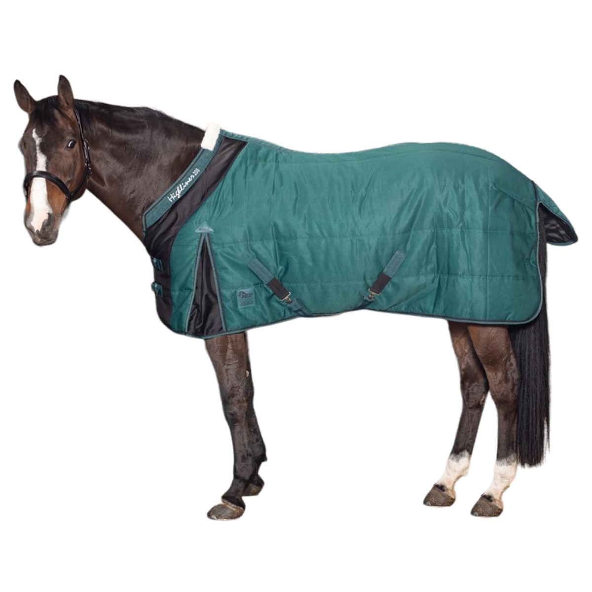 Зимняя попона (Winter Blanket) из полиэстера плотностью 300D, водонепроницаемого прочного и износостойкого материала с наполнителем из полифилла согреет вашу лошадь в холодное время года. Утеплитель нового поколения - импортный материал Полифилл (Polyfill) - это новый высокоэффективный, обладающий повышенной устойчивостью к сжатию, обеспечивающий хорошую вентиляцию, обладающий прекрасными теплоизолирующими свойствами синтетический материал. Легкий, теплый и прочный, он хорошо пропускает воздух и не впитывает влагу. Удобная шейная часть с меховой вставкой в области холки и небольшая удлиненность в области хвоста обеспечивают идеальную посадку на лошади. Плечевые вытачки широкие, что предоставляет большую свободу плечам. Двойные застёжки спереди, эластичные перекрещивающиеся попонодержатели, фурнитура серебристого цвета. С внутренней стороны имеются снимающиеся эластичные ремни для задних ног, что предотвратит сползание попоны.