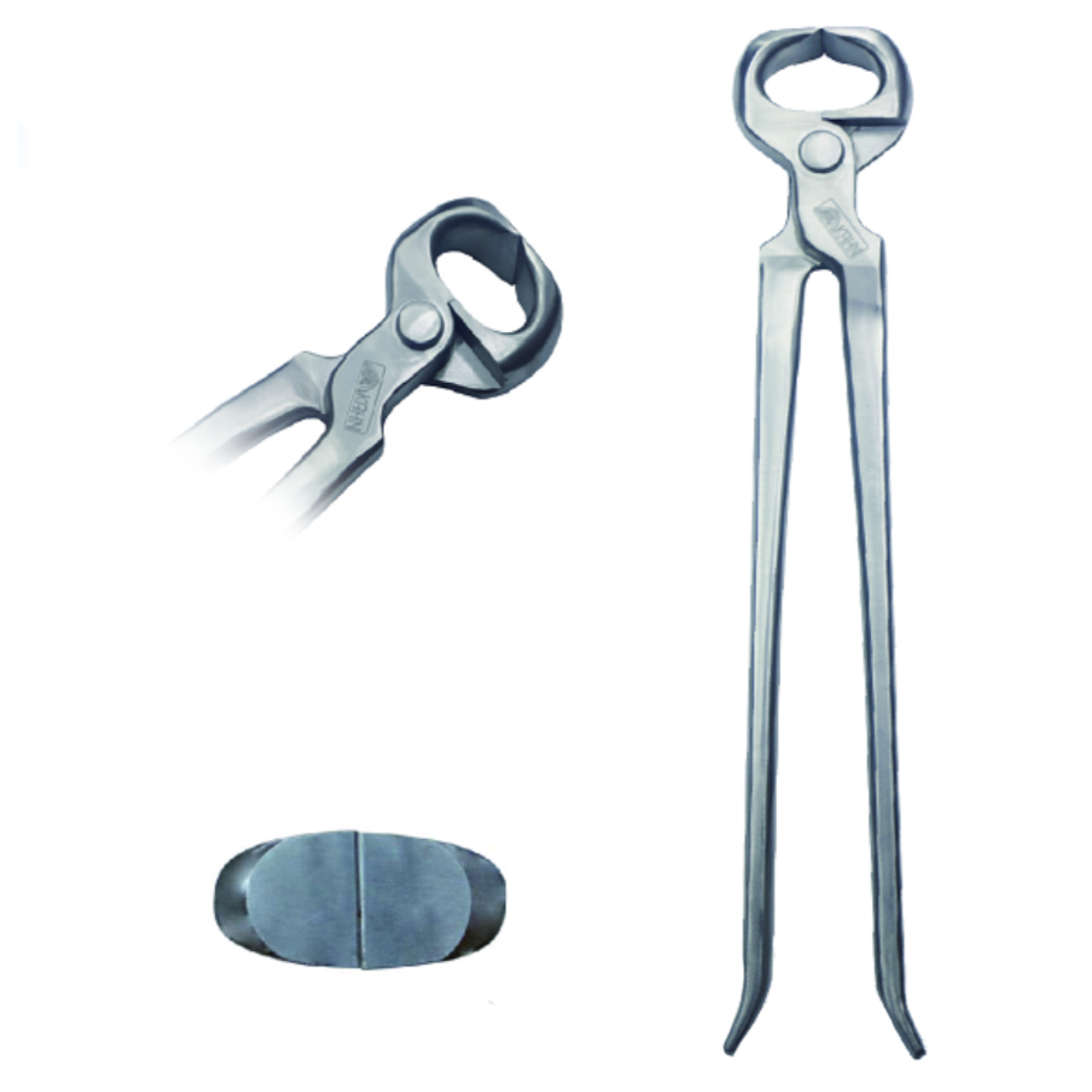 Классические клещи для снятия подков из высококачественного материала. Размер 14". Ковочные клещи Pull off должны быть хорошо сбалансированы, с удобными ручками и подходить для работы с большинством типов подков. Кроме основной функции снятия старой подковы с копыта клещи могут также использоваться для раздвигания ветвей подковы (при подгонке подковы по копыту) и для откусывания гвоздей. Клещи – это инструмент, который должен быть у каждого владельца лошади и использоваться им (например, подкова, которая плохо держится на копыте, должна быть снята как можно скорее). Клещи для снятия подков сделаны из высокоуглеродистой инструментальной стали 5140. Закаленные зубцы обеспечивают долгий срок службы и точность инструмента.